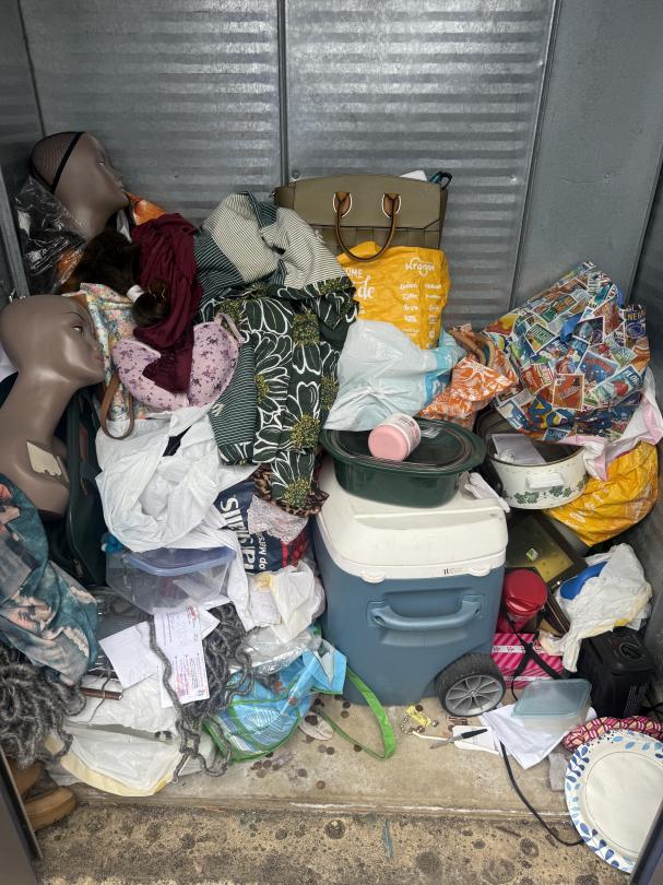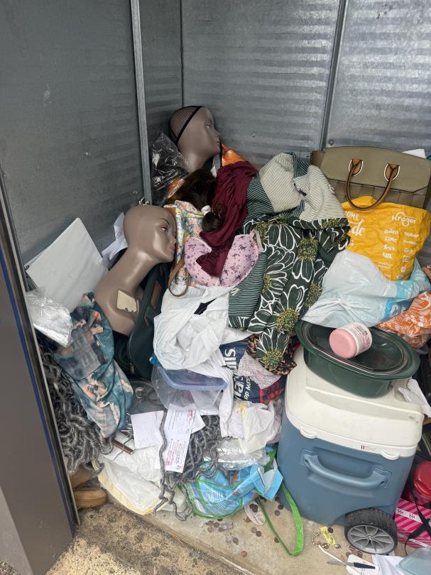 This unit appears to contain…Bag, cooler, heater, sewing machine, purse, hair, manequins, crockpot
