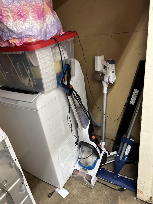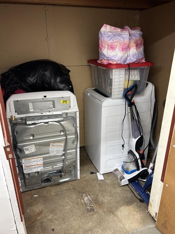 This unit appears to contain…READ ALL AUCTION RULES BEFORE BIDDING!!! Unit appears to contain: washer, dryer, freezer, vacuums, bag, tote, toys