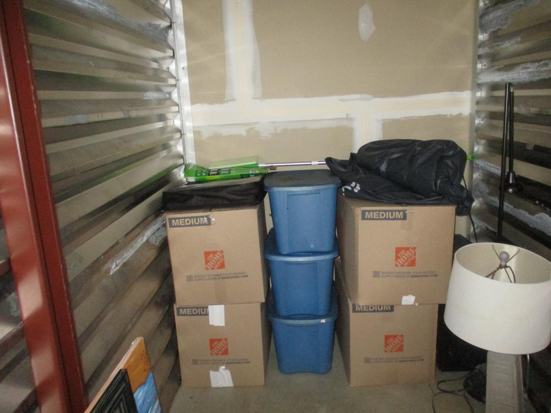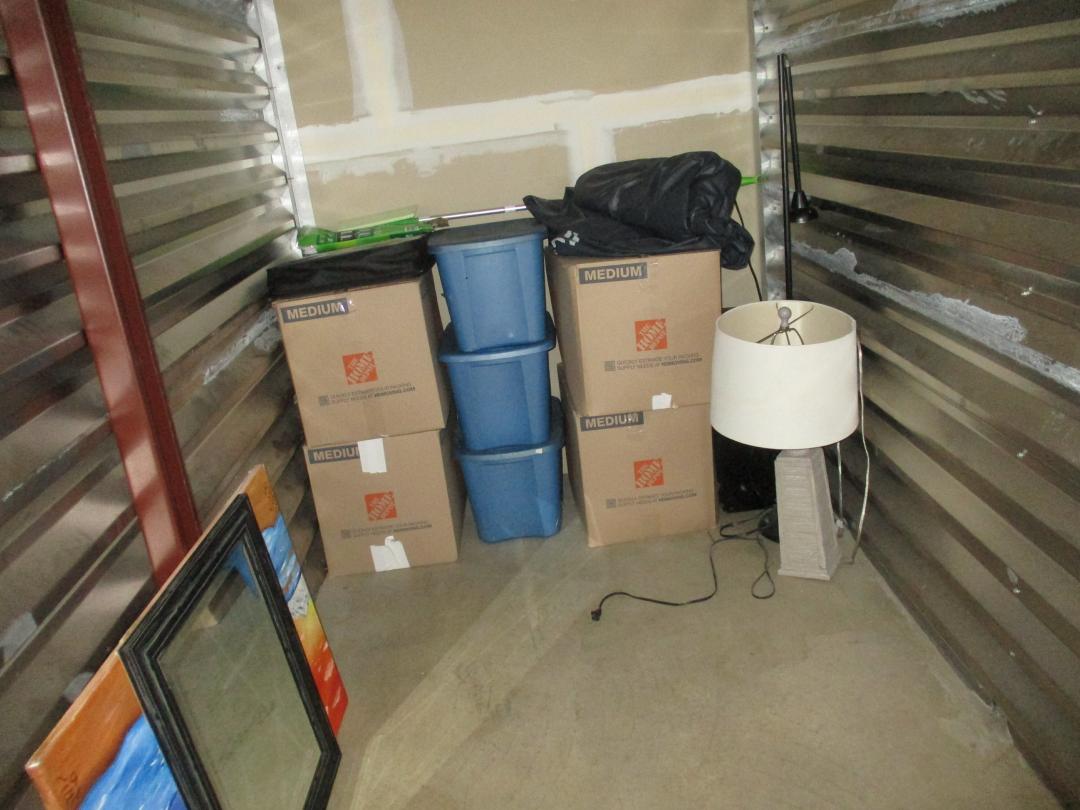 This unit appears to contain…personal property, mirror, wall art, boxes, totes, lamp, air mattress