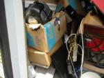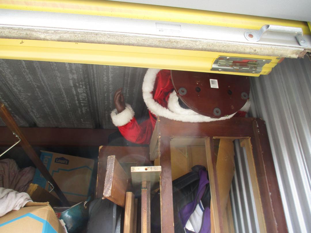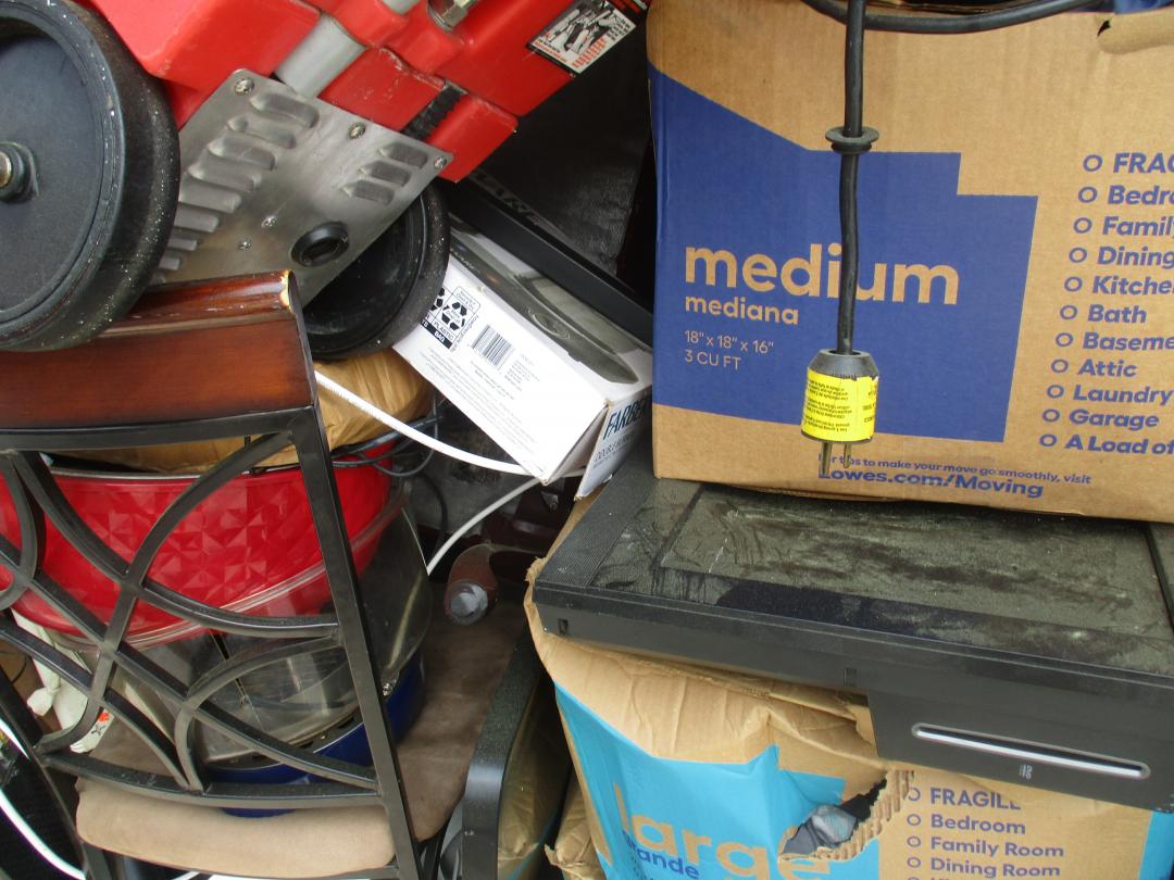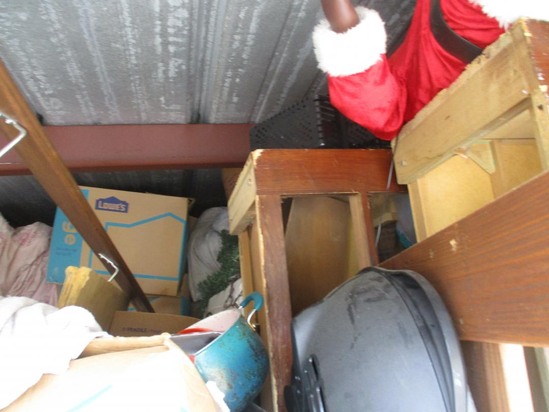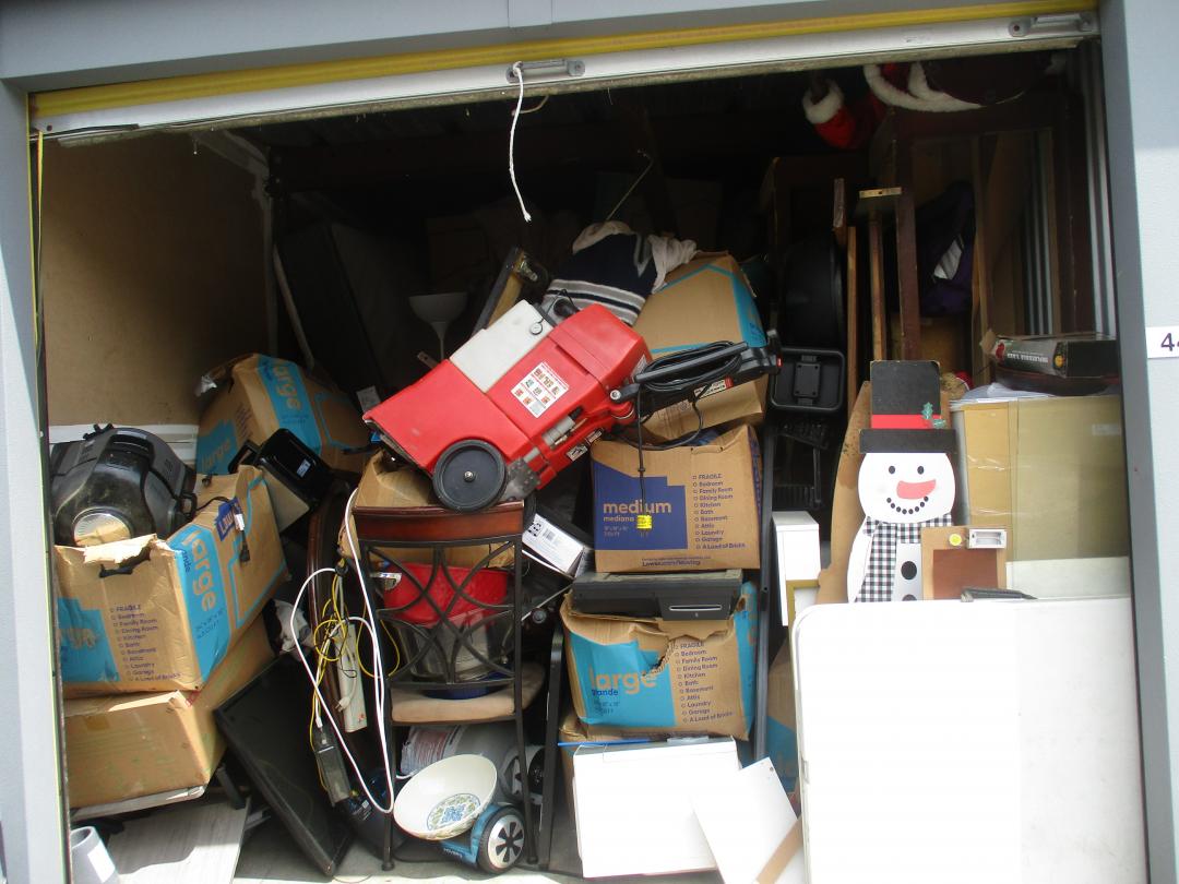 This unit appears to contain…Personal Property, tv, microwave, chairs, carpet cleaner, boxes, totes, mattress, box spring, lamps, Christmas decor, household furn, kitchen items, tables