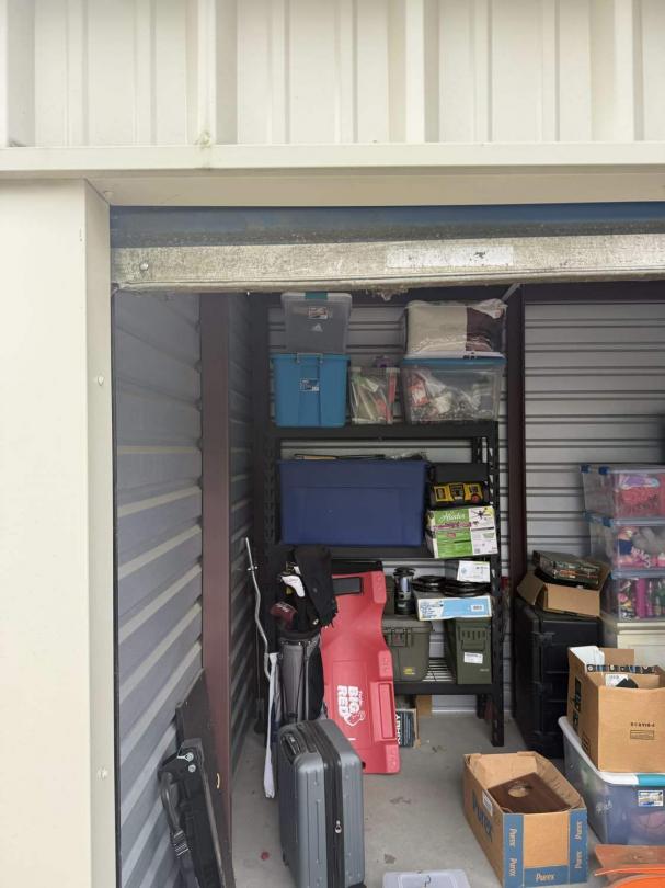 This unit appears to contain…Drive Up Access, Fenced & Gate, Security Cameras Golf clubs, bike rack, military ammo cans, jump box, car radio, wooden bat