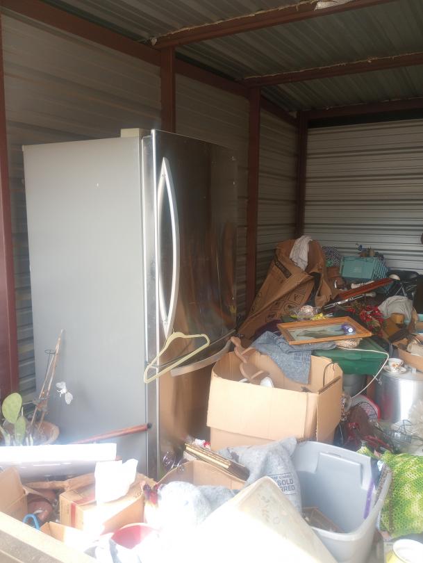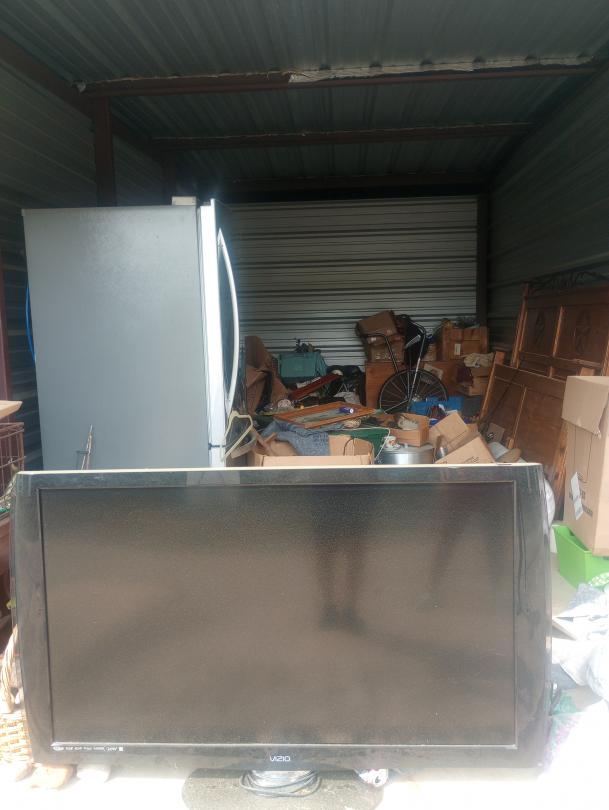 This unit appears to contain…TV,Freezer or Fridge,Kitchenware,Plastic Bags,Plastic Containers,Misc. Boxes,Exercising Equip.