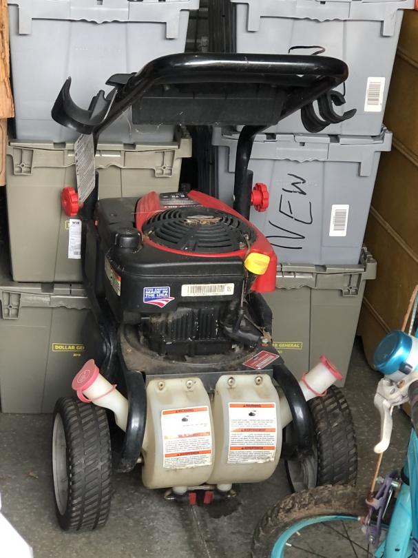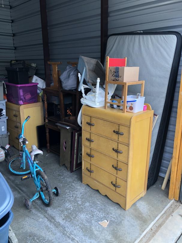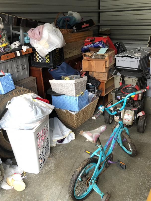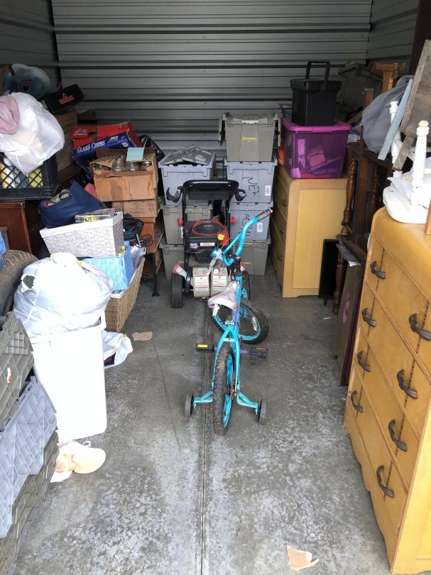 This unit appears to contain…Toys, books, tools, clothes, furniture, pressure washer, television, boxes, containers
