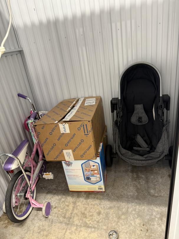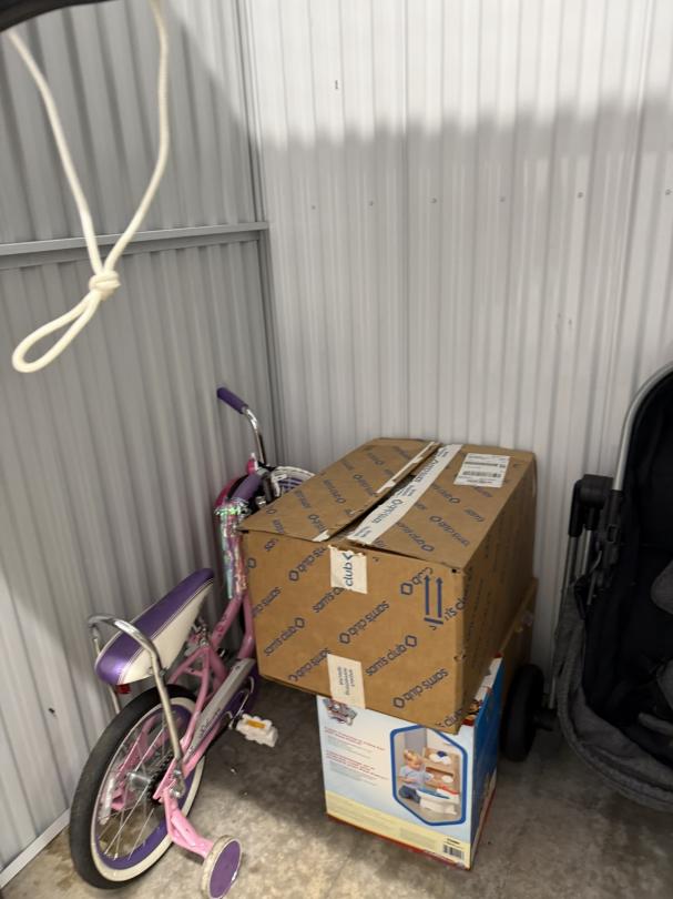 This unit appears to contain…Kids Bike, Stroller, Boxes