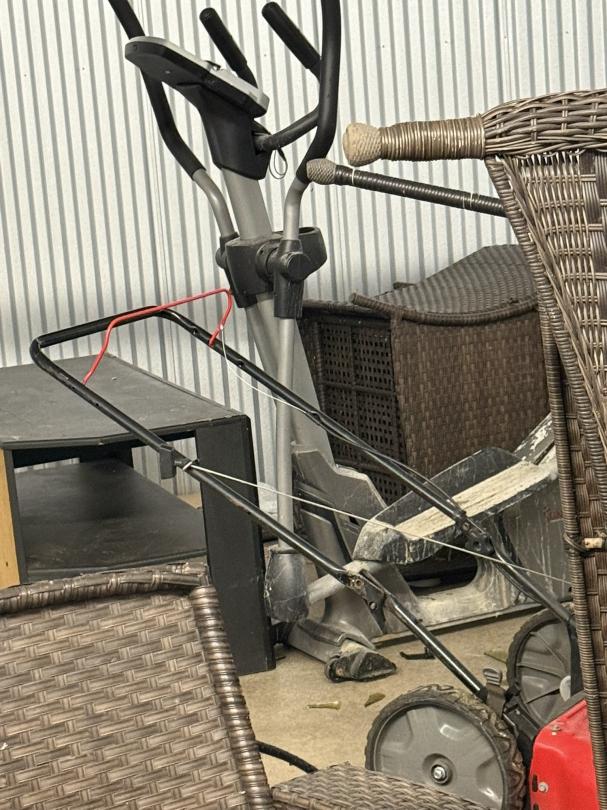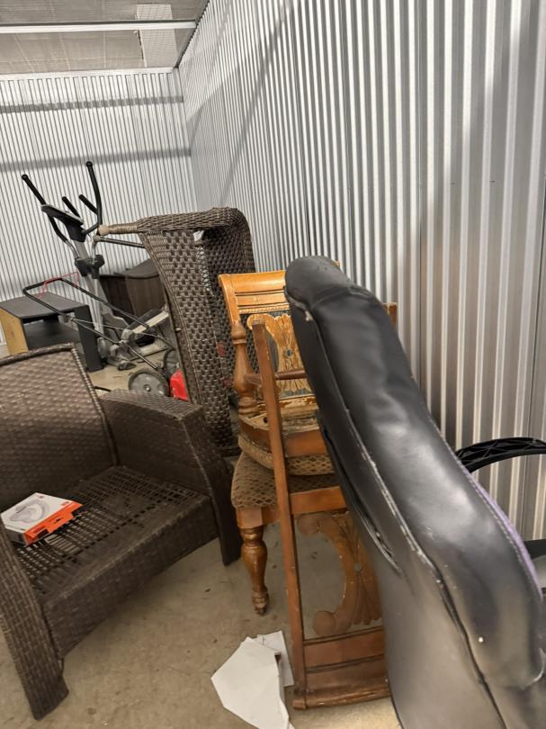 This unit appears to contain…Chairs, Wall Art, Elliptical, Lawn Mower, TV Stand