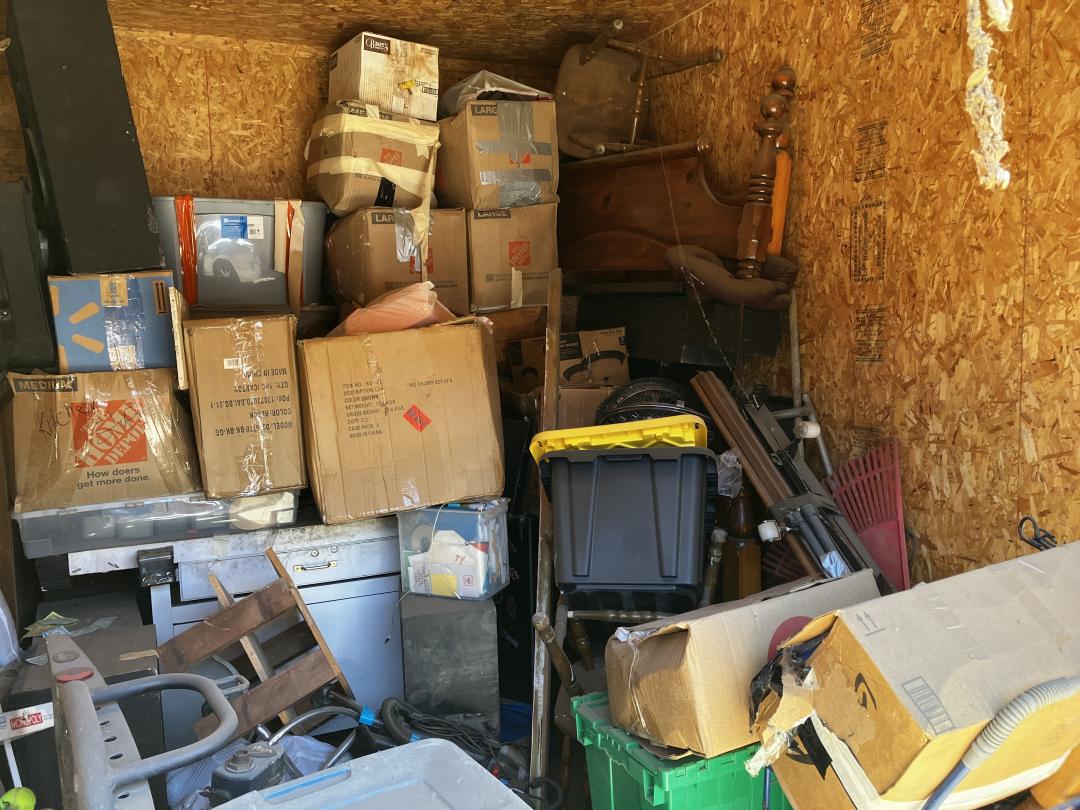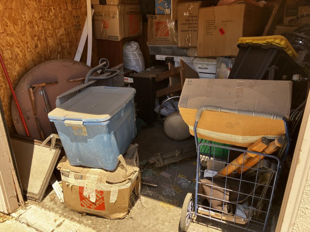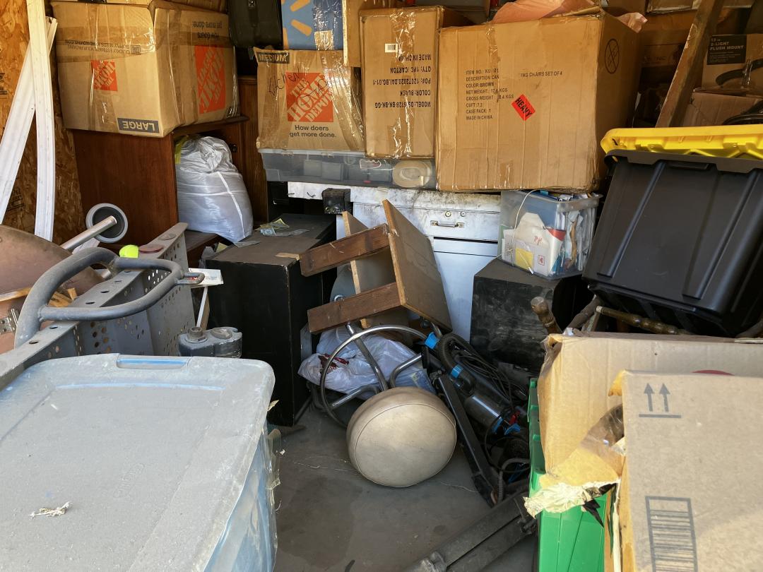 This unit appears to contain…unit contains mystery boxes, luggage, chairs, table