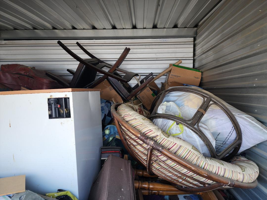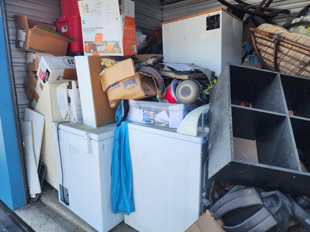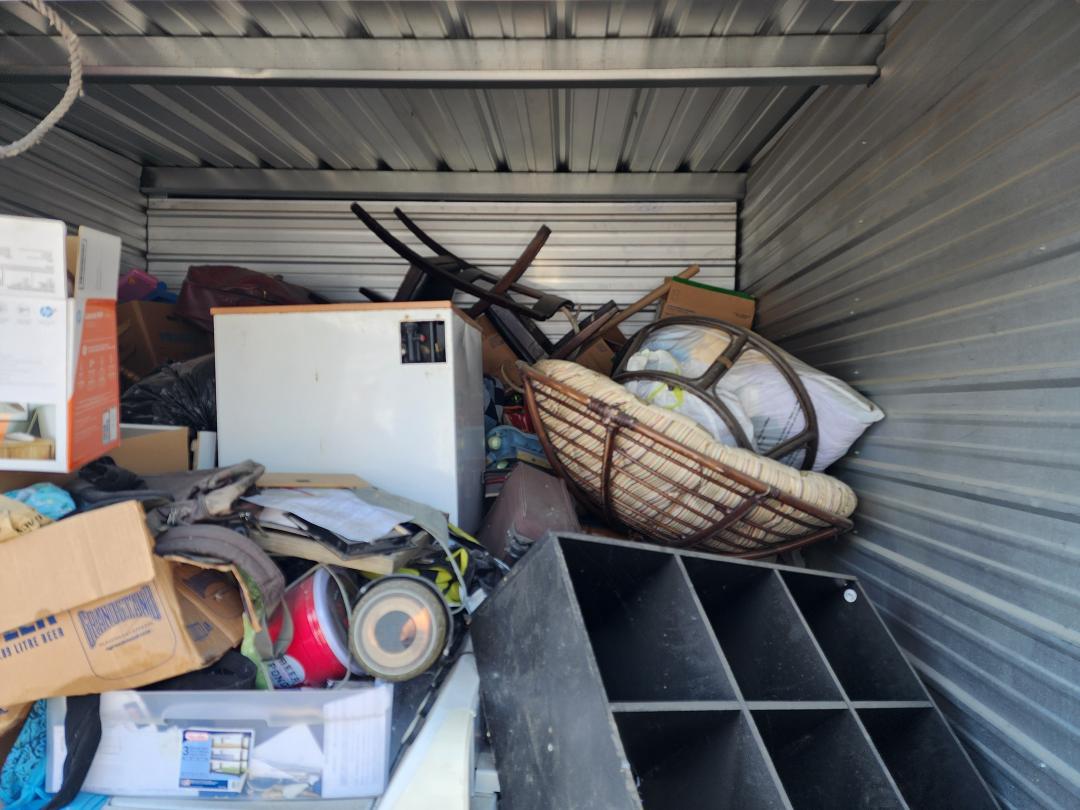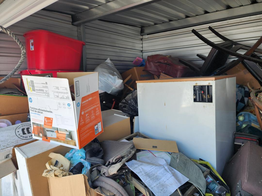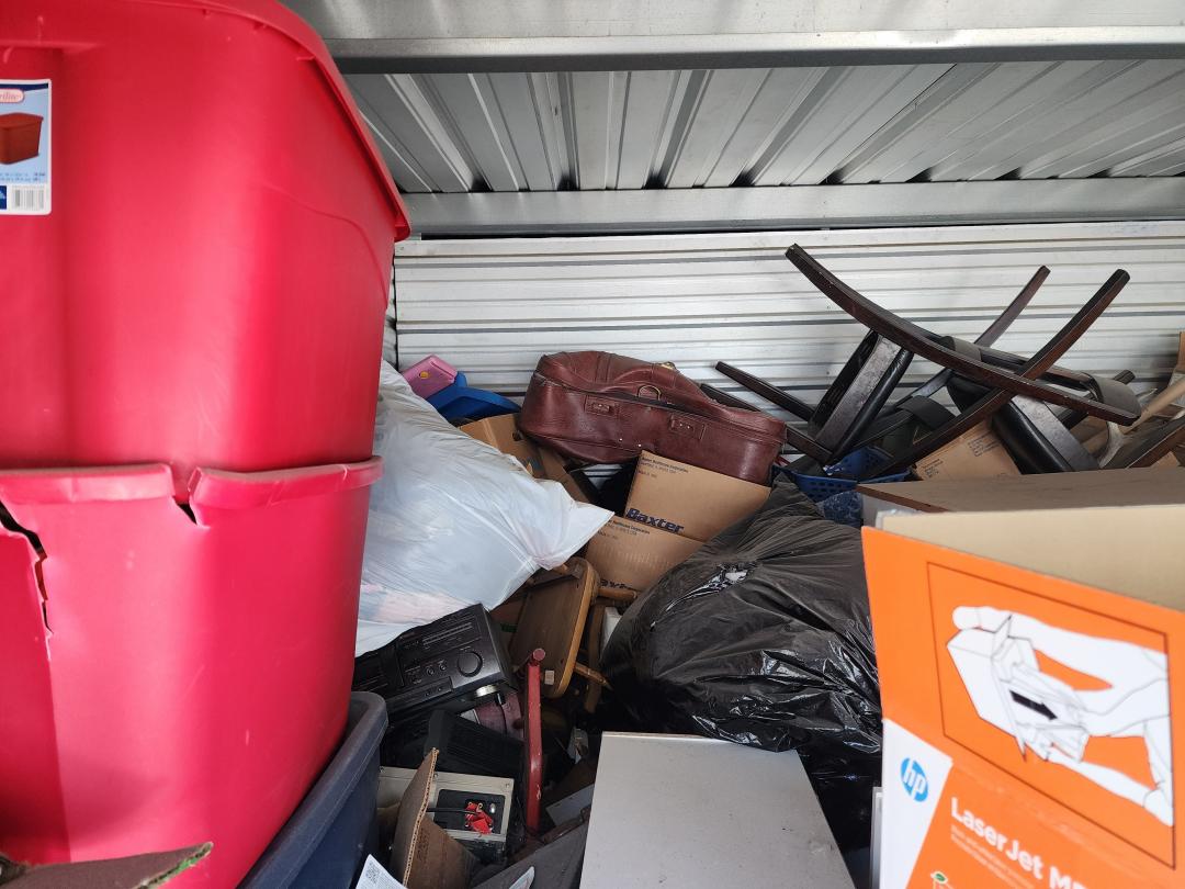 This unit appears to contain…Cube storage, backpack, tool bag, jewelry, bike seat, patio furniture, chairs, head mount, suitcases, boxes, washer & dryer, dishwasher, plastic storage, freezer, kitchenware, radio, electronics, wall art, baby items, H/H, bags, shelf