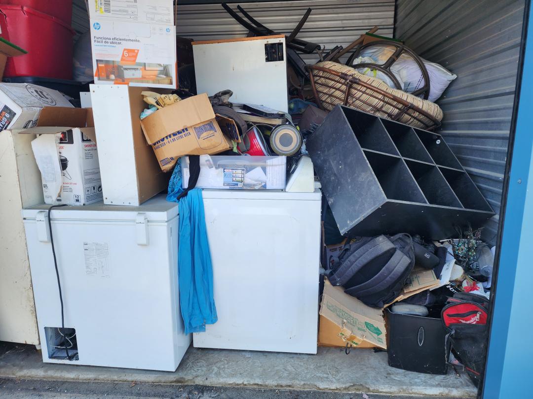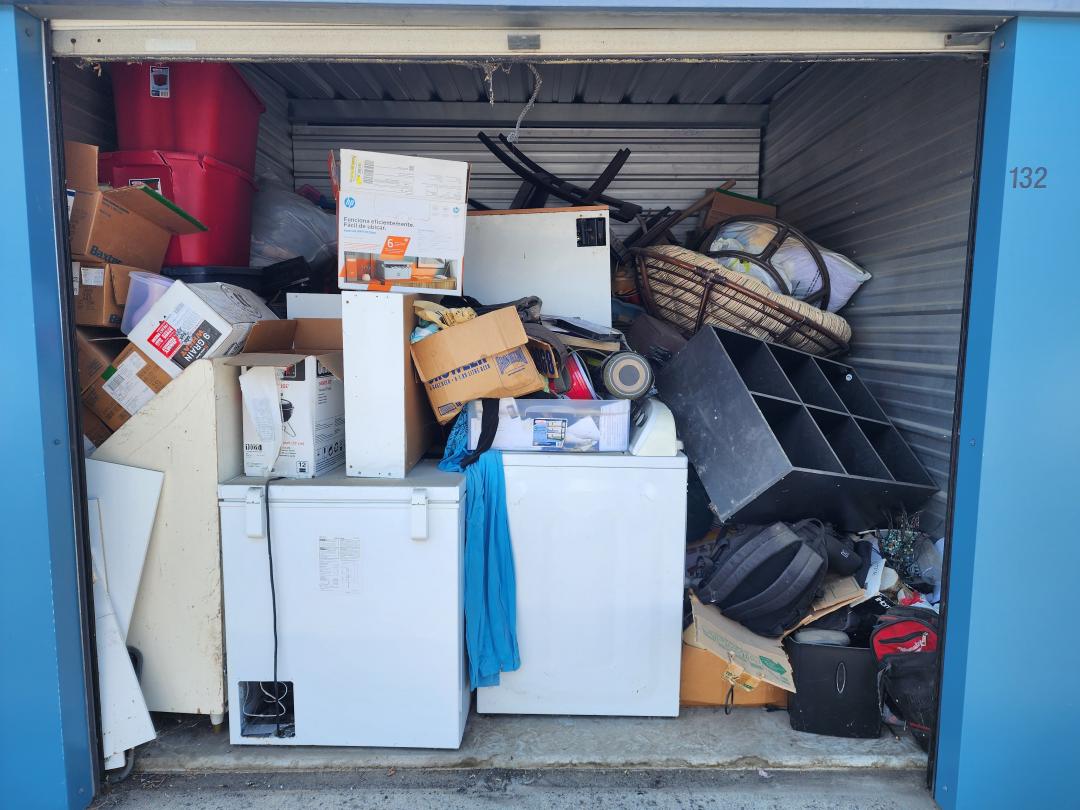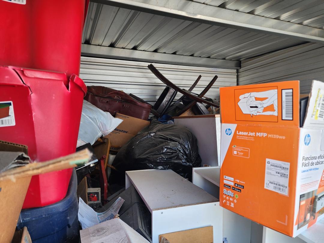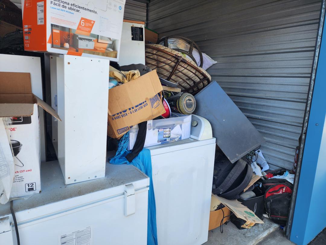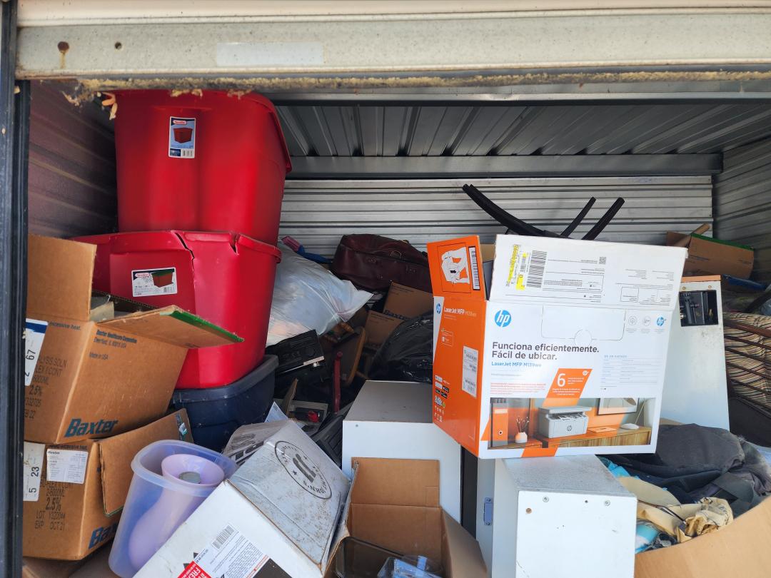 This unit appears to contain…Cube storage, backpack, tool bag, jewelry, bike seat, patio furniture, chairs, head mount, suitcases, boxes, washer & dryer, dishwasher, plastic storage, freezer, kitchenware, radio, electronics, wall art, baby items, H/H, bags, shelf