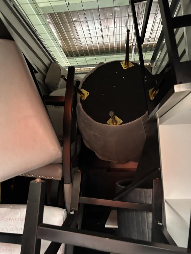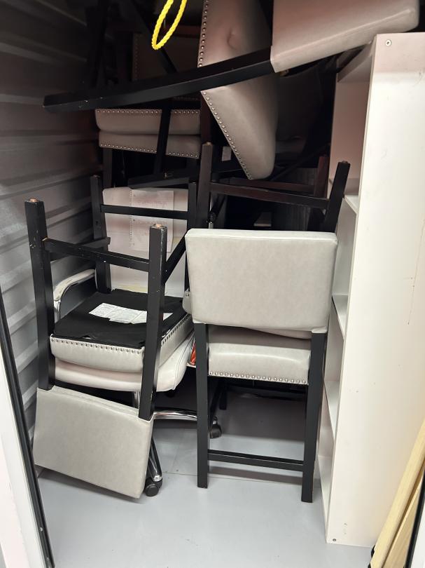 This unit appears to contain…READ ALL AUCTION RULES BEFORE BIDDING!!! Unit appears to contain: couch, rolling cart, chairs, bookcase