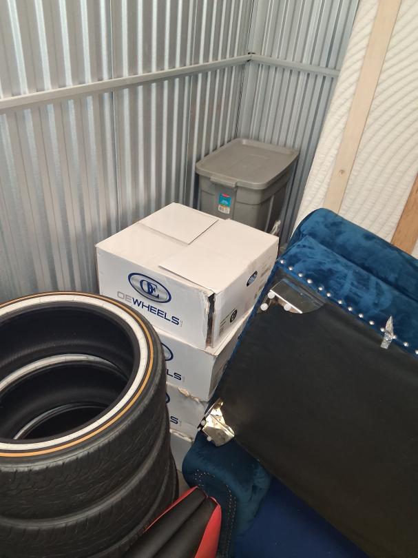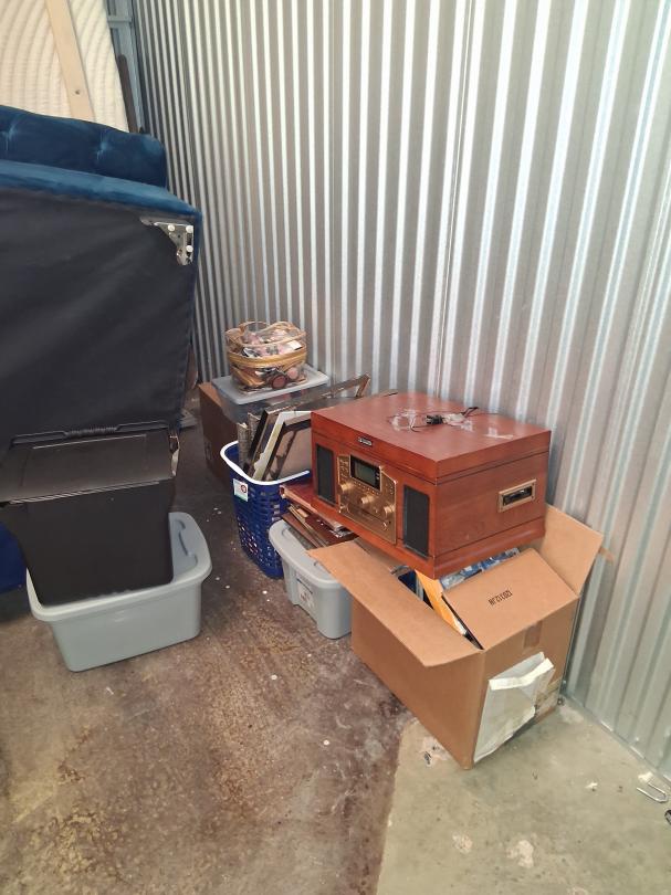 This unit appears to contain…Couches,Mattresses,Box Springs,Bed Frame,Decor,Plastic Containers,Misc. Boxes