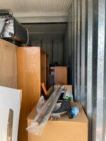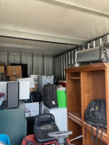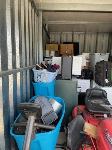 This unit appears to contain…riding lawn mower, boxes, totes, bags, luggage, shelf, washer/dryer