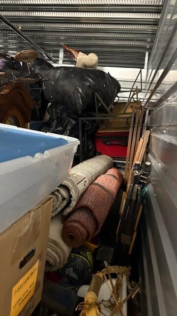 This unit appears to contain…Totes Speakers Boxes Rugs Furniture Misc Items