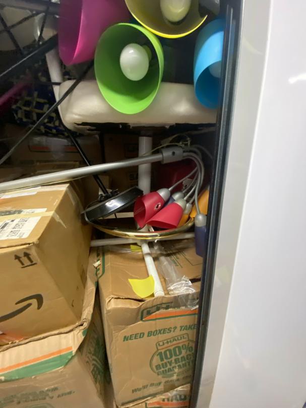 This unit appears to contain…Lamps,Decor,Plastic Bags,Plastic Containers,Misc. Boxes,Clothing,Misc. Items