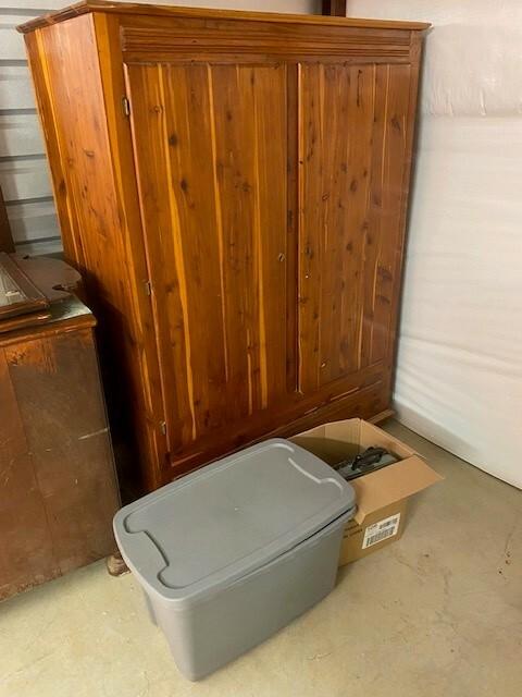 This unit appears to contain…Range Oven, Dryer, Fan, Electric Heater, Cedar Cabinet, Dresser w/mirror