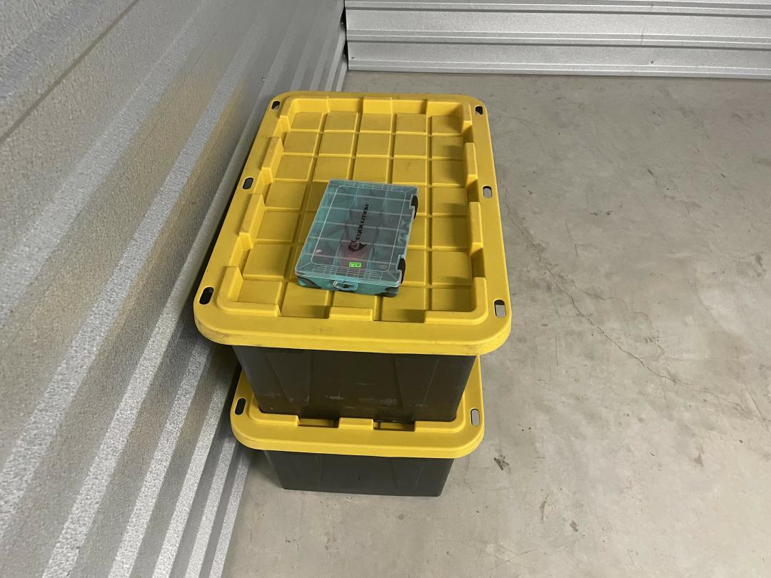 This unit appears to contain…Tackle Box, 2 Storage Bins.