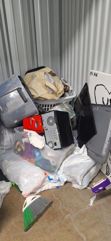 This unit appears to contain…UNIT APPEARS TO CONTAIN MINI FRIDGE, DESKTOP, MONITOR, GUITAR, BAGS, BOXES, WALL ART, AND BASKETS SEAL NUMBER: 6115599