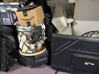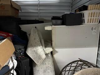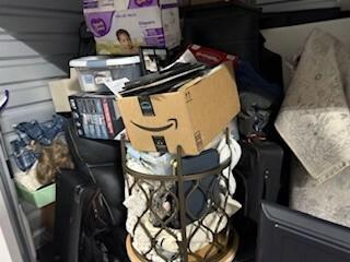 This unit appears to contain…sofa, dresser, lamp, boxes, totes, tv, suitcase, rug