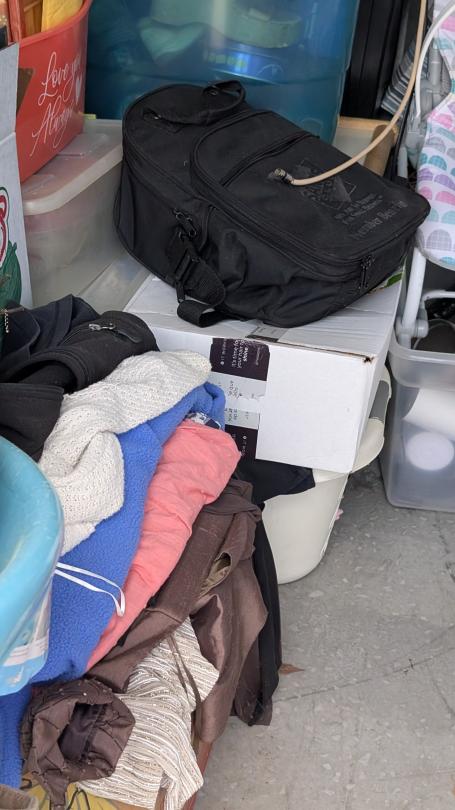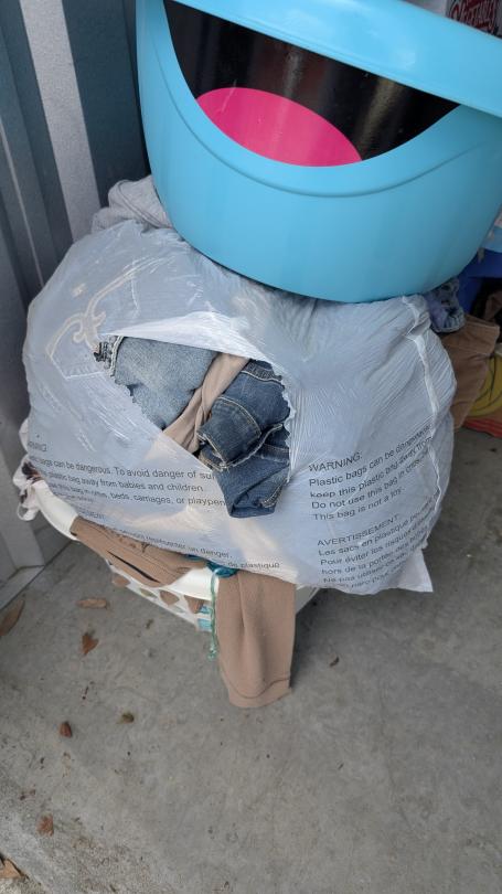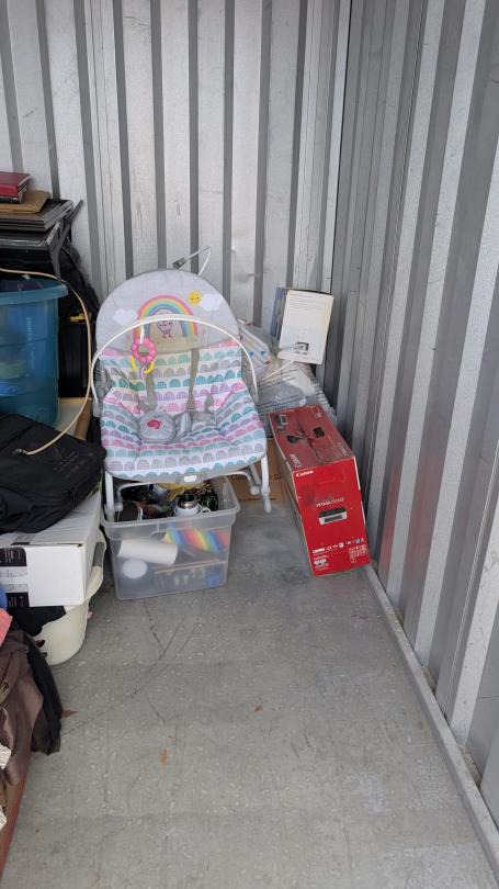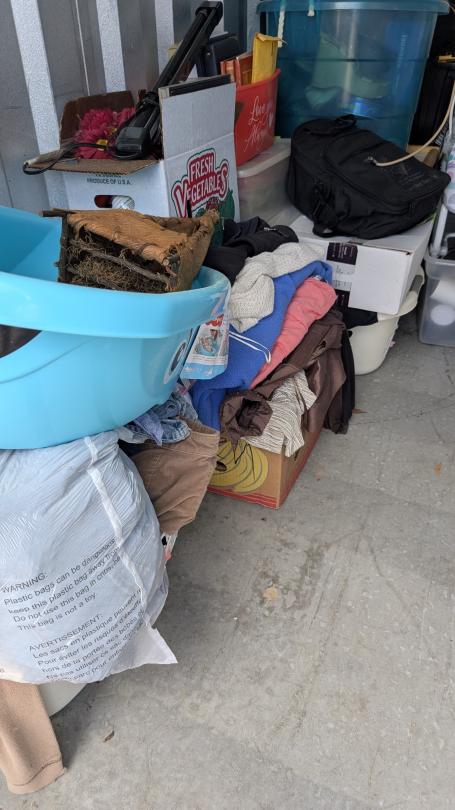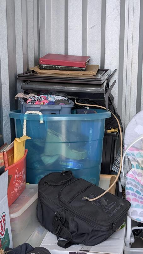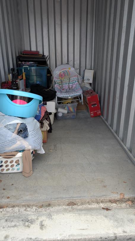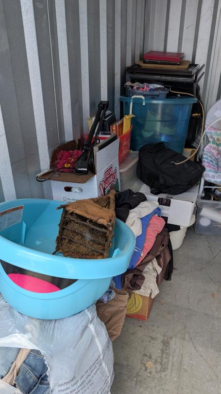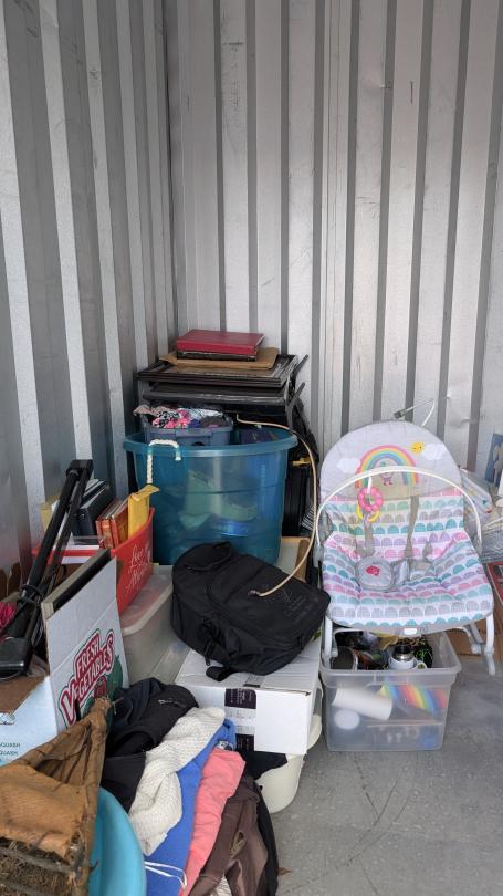 This unit appears to contain…CLOTHES, BABY ITEMS, BOXES,TOTES, BAGS, LAUNDRY BASKET, ETC
