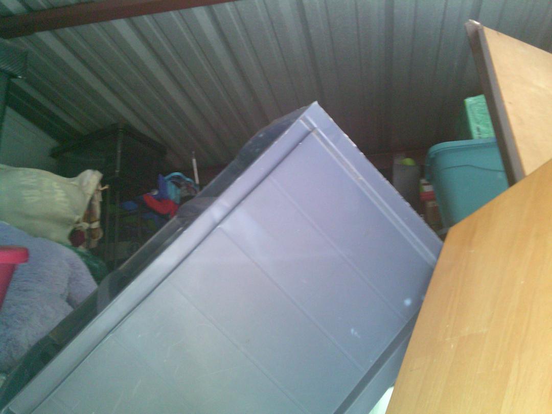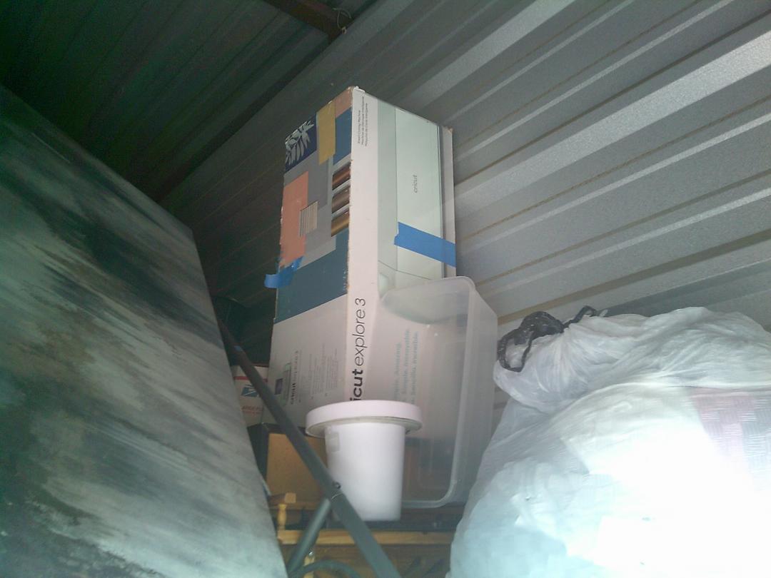 This unit appears to contain…BOXES, TOTES, TV STAND, PANS, EXCERISE BALL, PLASTIC DRAWERS, HOUSEHOLD FURNITURE, ETC