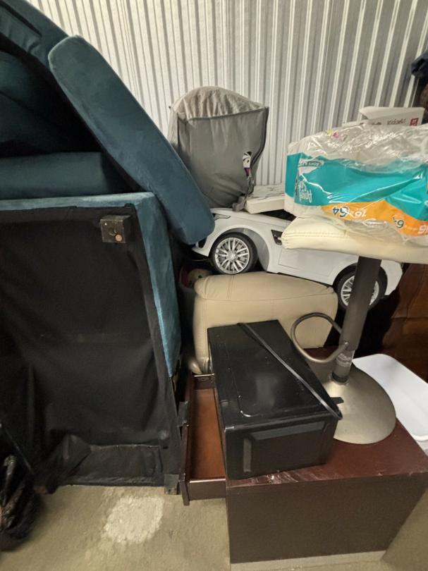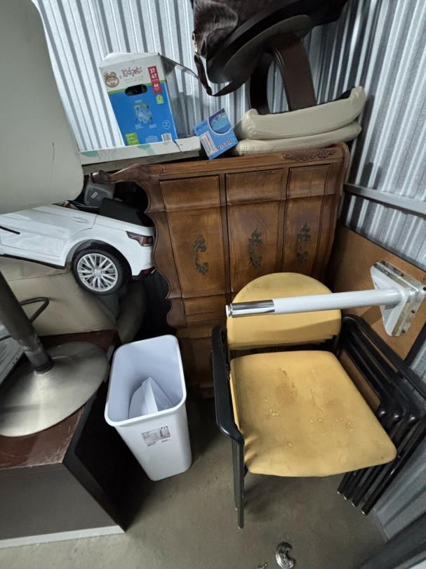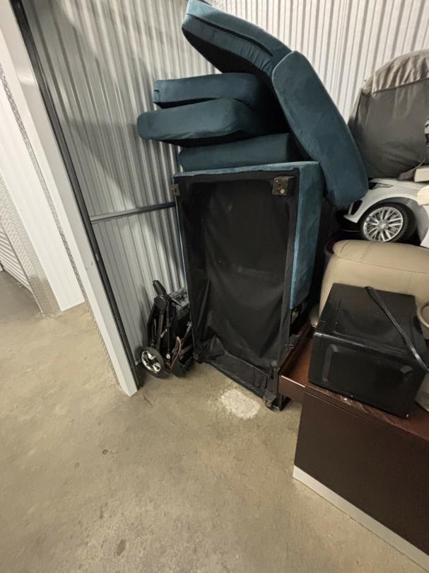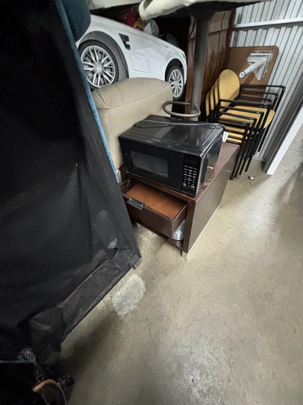 This unit appears to contain…Microwave,Couches,Dressers or Armoire,Chairs,Tables,Plastic Containers,Misc. Items,Laundry Baskets,Baby Furniture,Toys
