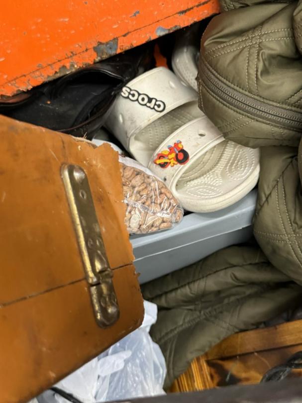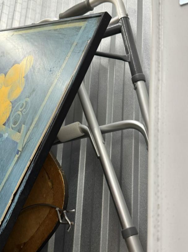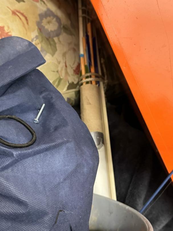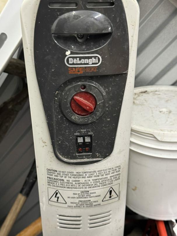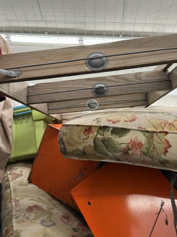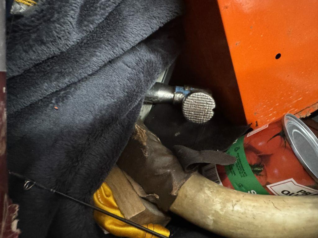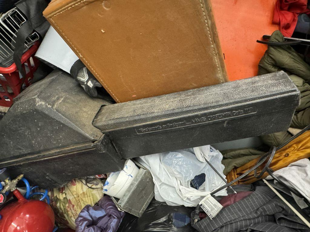 This unit appears to contain…air compressor-pump, clothes shovel, hammer, sledgehammer, fishing pool, cooler, file cabinet