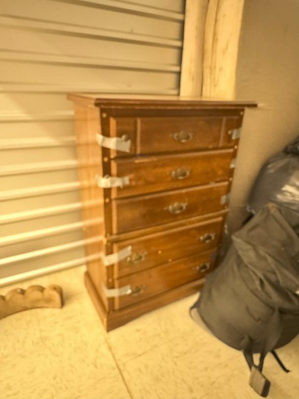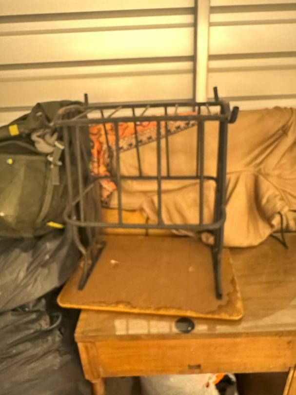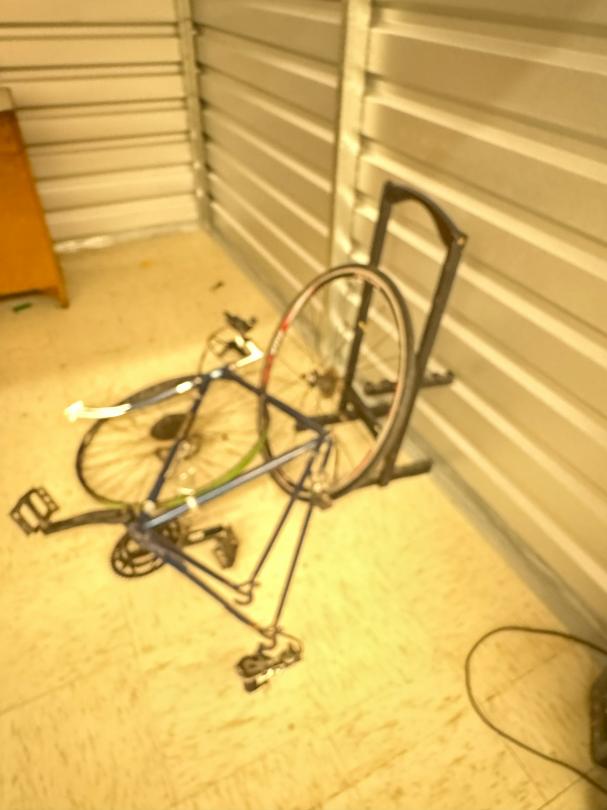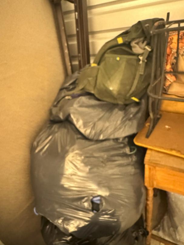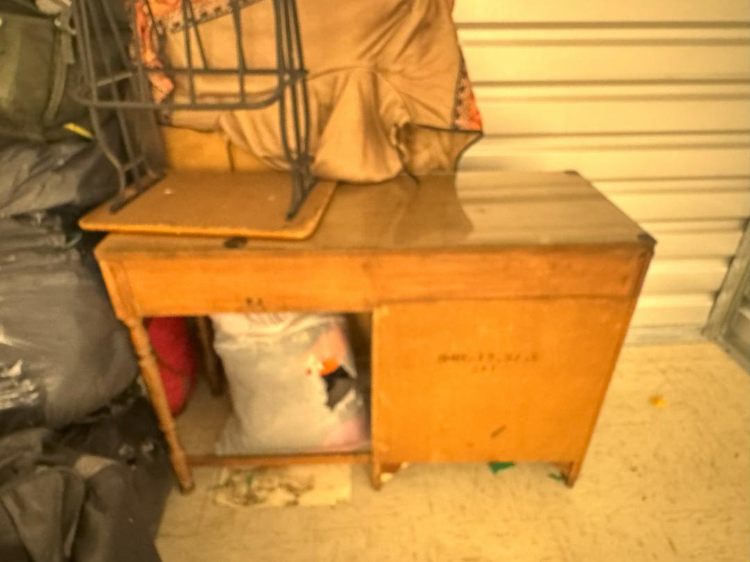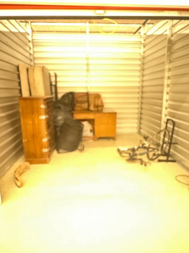 This unit appears to contain…dresser, desk, twin mattress w/metal frame, bike frame, bags of clothes and misc items