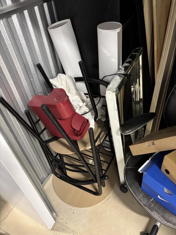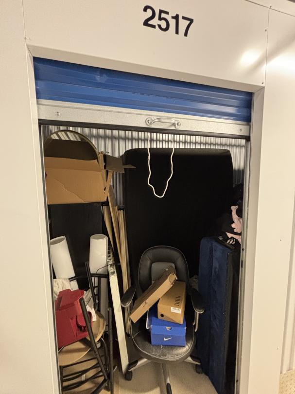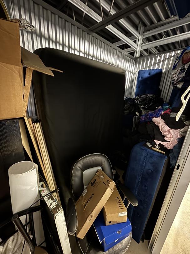 This unit appears to contain…This unit contains furniture, shoes, a mattress, and more!