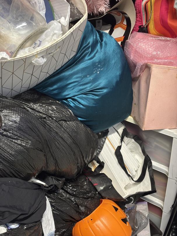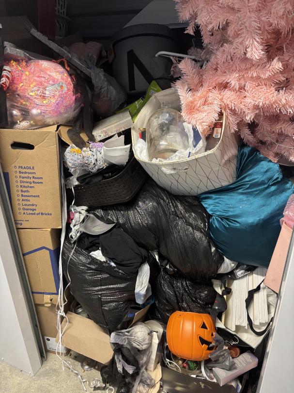 This unit appears to contain…Unit contains arts and crafts, a Christmas tree, clothes, and more.