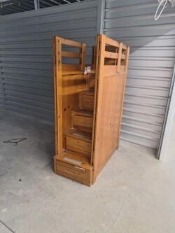 This unit appears to contain…Loveseat and wooden stairs to bunk beds