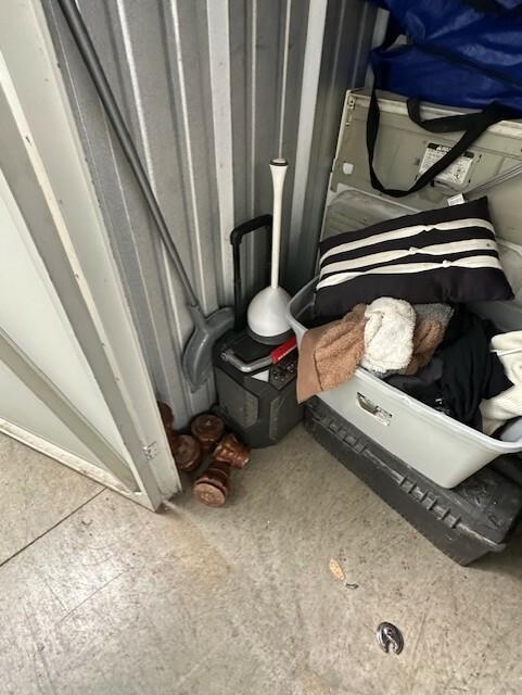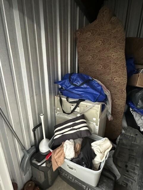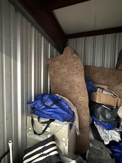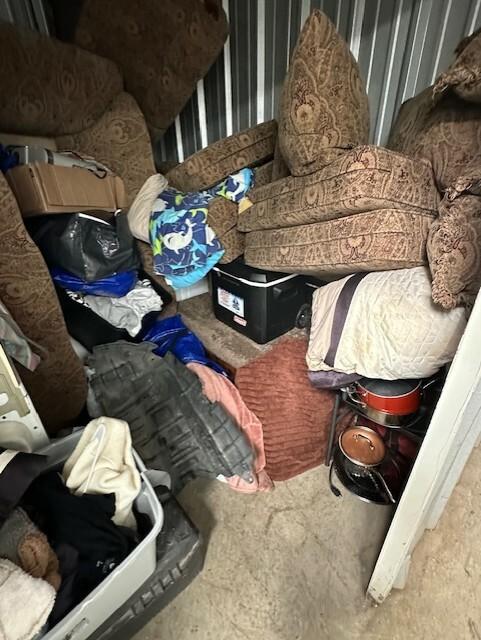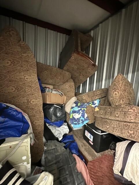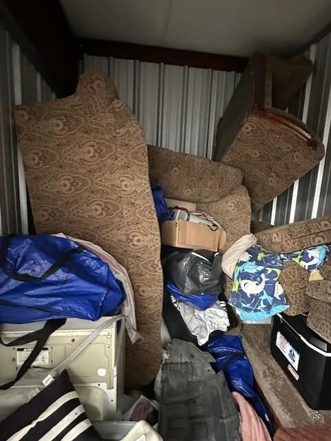 This unit appears to contain… Couches,Tables,Kitchenware,Decor,Plastic Bags,Plastic Containers,Misc. Boxes,Clothing,Cleaning Supplies