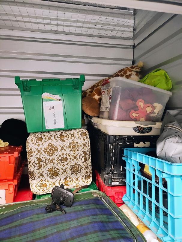 | Tags: | 5 Gallon Buckets, Bar Stools, clothes, Dresser, End Table, Fishing Poles, Helmet, suitcase, Totes, Trunk |