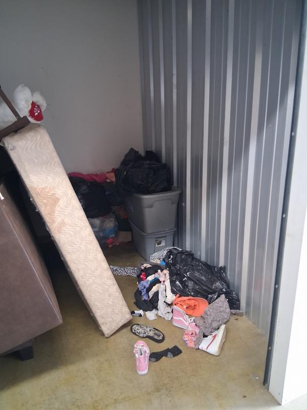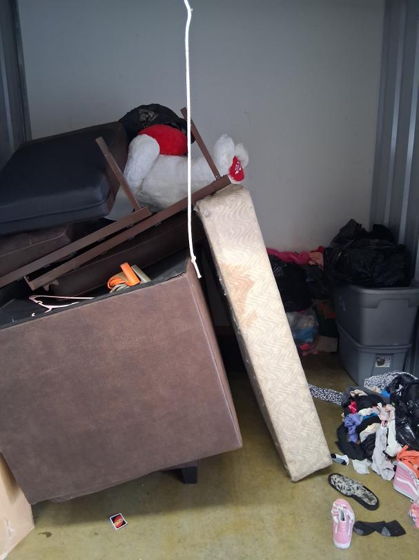 This unit appears to contain…COUCH, MATTRESS, BOXSPRING, TOTES, BAGS