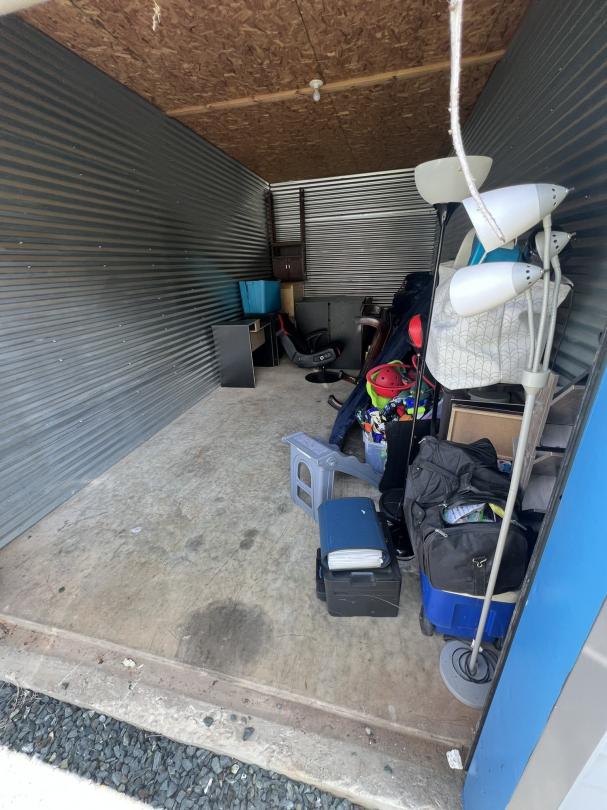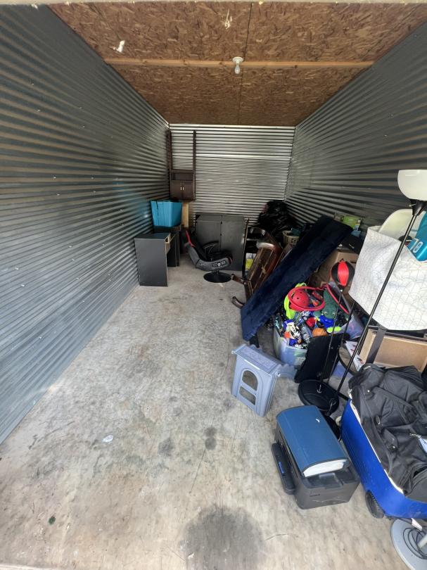 This unit appears to contain…Unit appears to contain: shelves, lamps, printer, gaming chair, toys, step stool, coffee table, headboard, cabinet, end tables, boxes, cooler, bag chair, totes and boxes