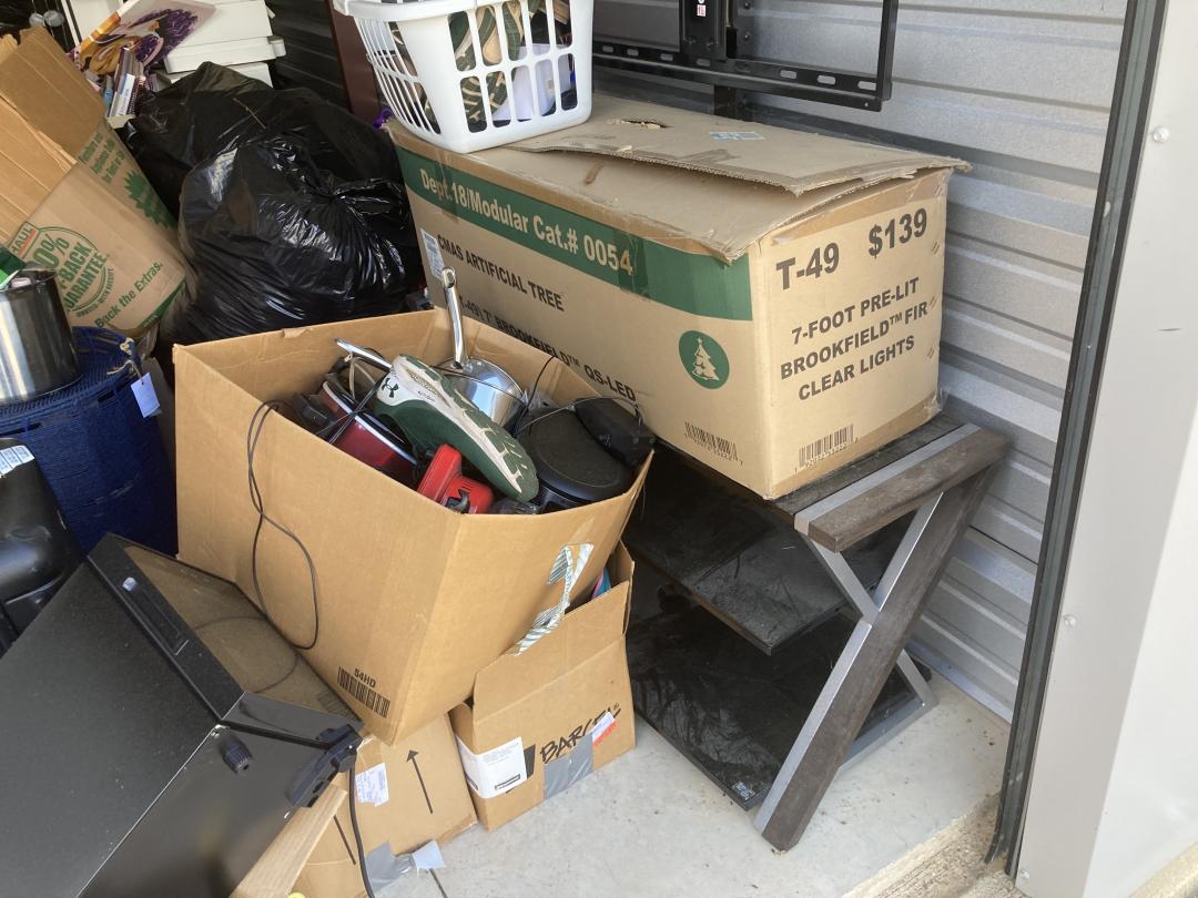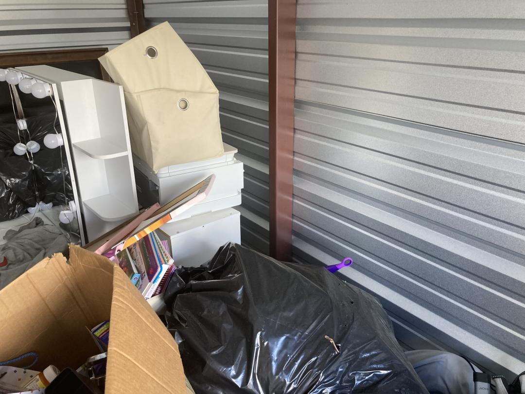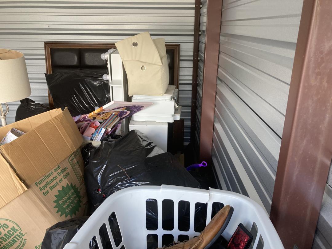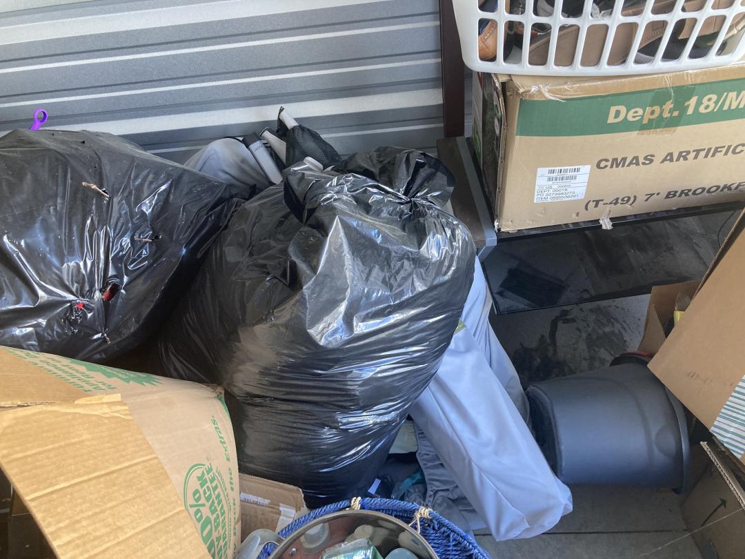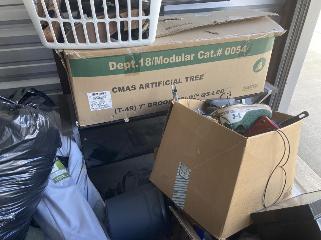 This unit appears to contain…MATTRESS, BOOTS, POTS & PANS, BAGS, BASKETS, HEADBOARD, HOVERBOARD, VANITY DESK, BOXES, SHOES, DRESSER, CHRISTMAS TREE, ENTERTAINMENT CENTER, KITCHEN APPLIANCES
