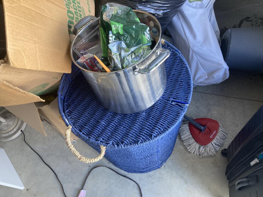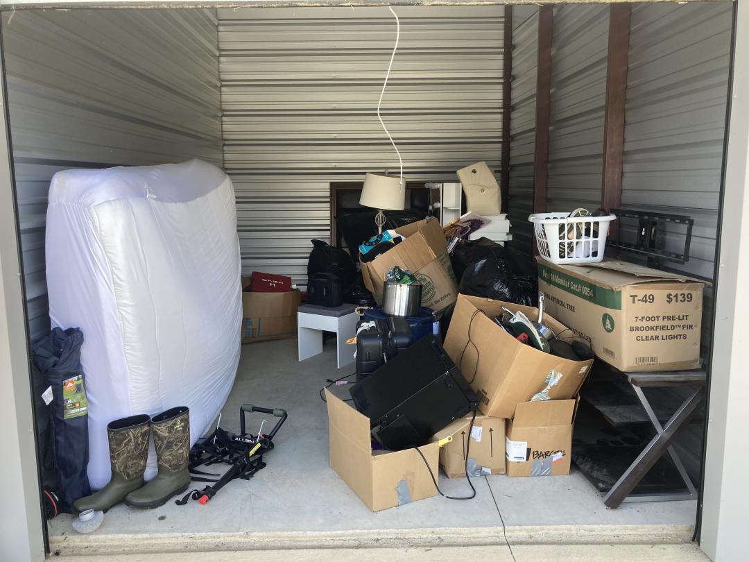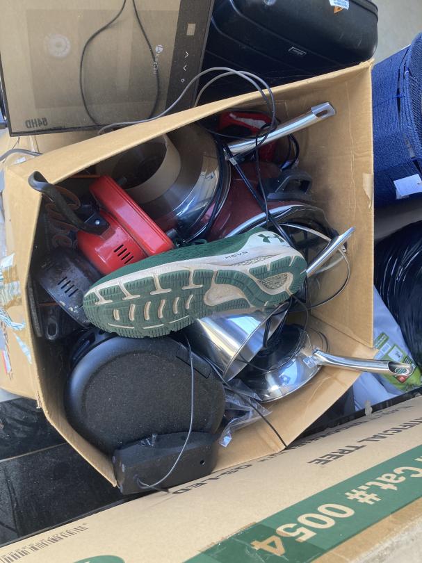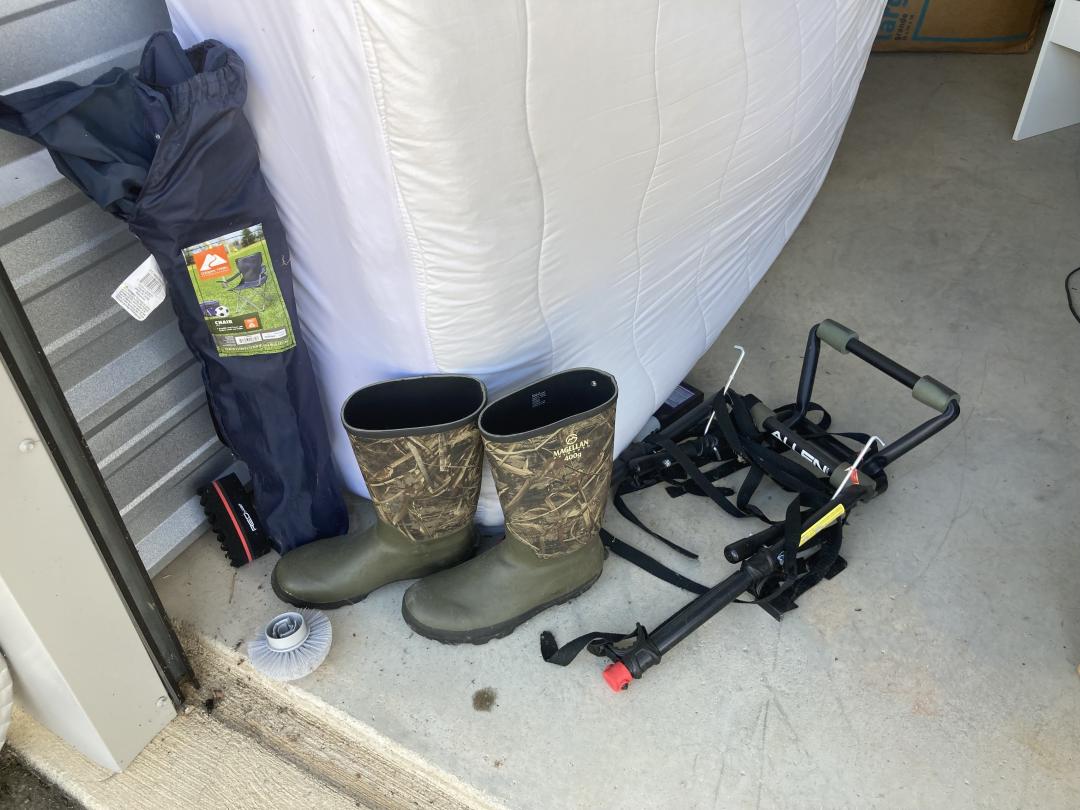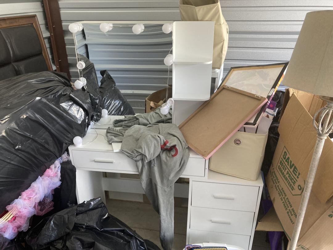 This unit appears to contain…MATTRESS, BOOTS, POTS & PANS, BAGS, BASKETS, HEADBOARD, HOVERBOARD, VANITY DESK, BOXES, SHOES, DRESSER, CHRISTMAS TREE, ENTERTAINMENT CENTER, KITCHEN APPLIANCES