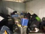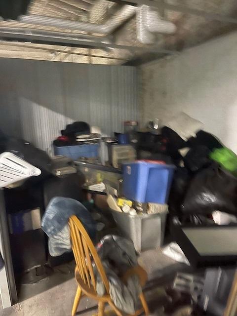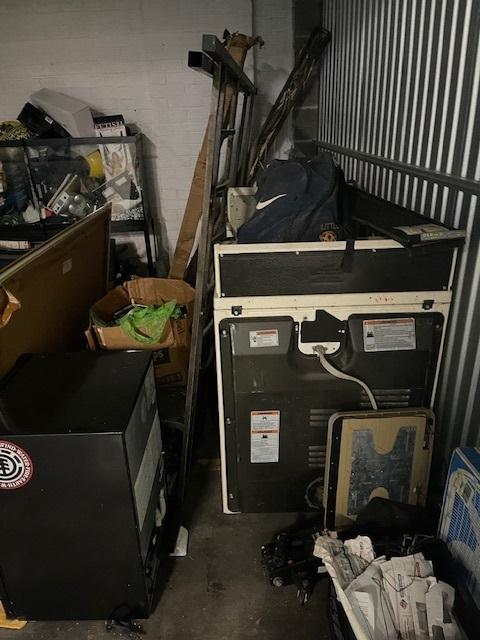 This unit appears to contain…Aquariums (3), totes, pictures, washer, dryer, speakers, refrigerator