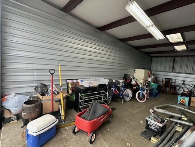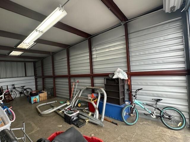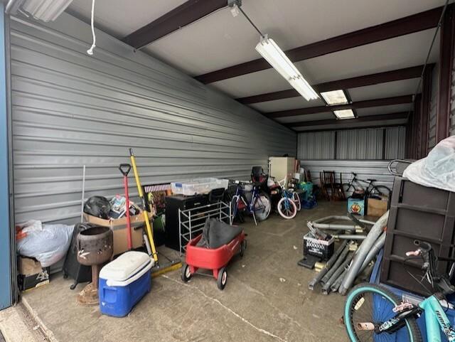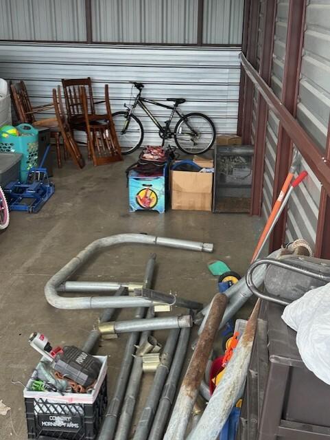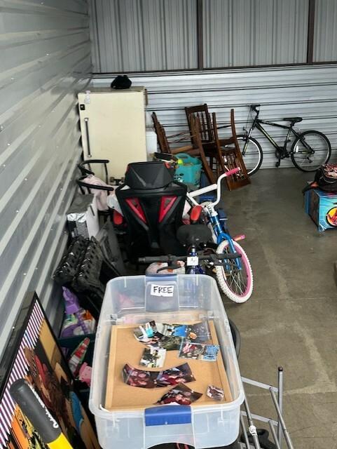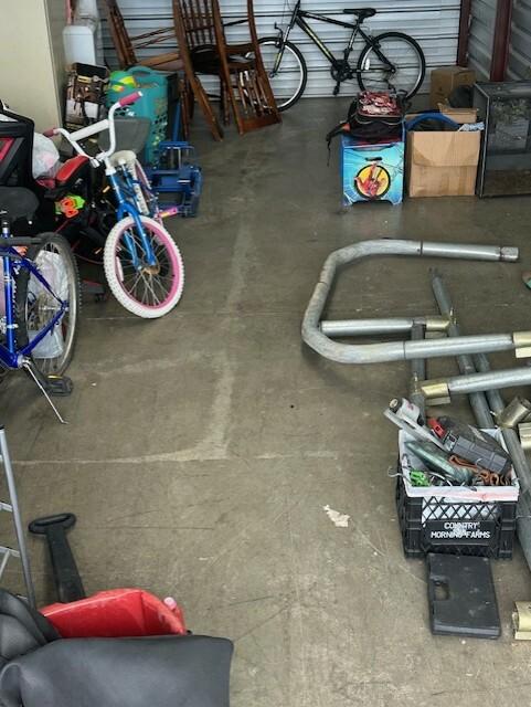 This unit appears to contain…Bikes, chairs, fridge, jack, toybox, backpack, tools, sawhorses, desk, totes, wagon, boxes, bags, cooler, plastic storage bin