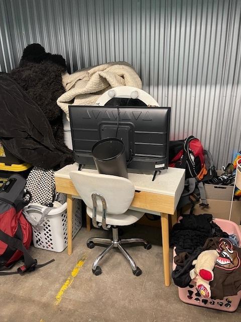 This unit appears to contain…TV, totes, mirror, desk, office chair
