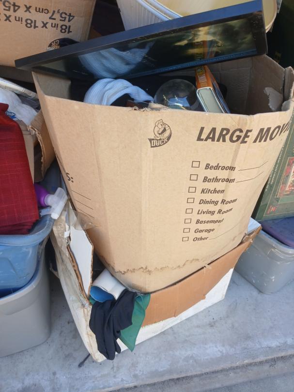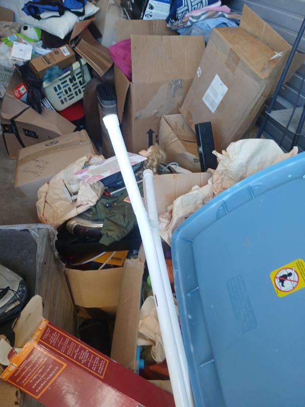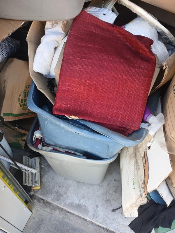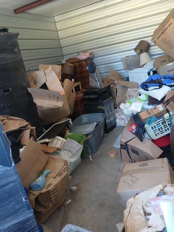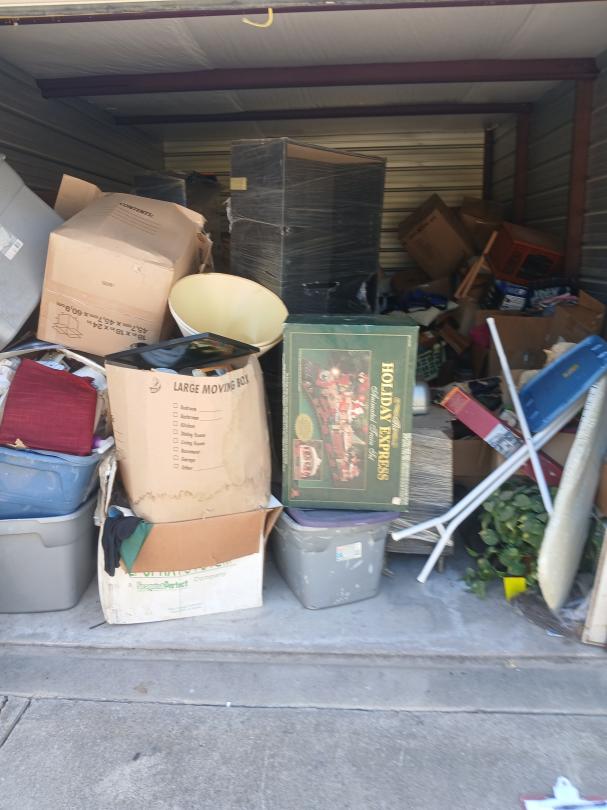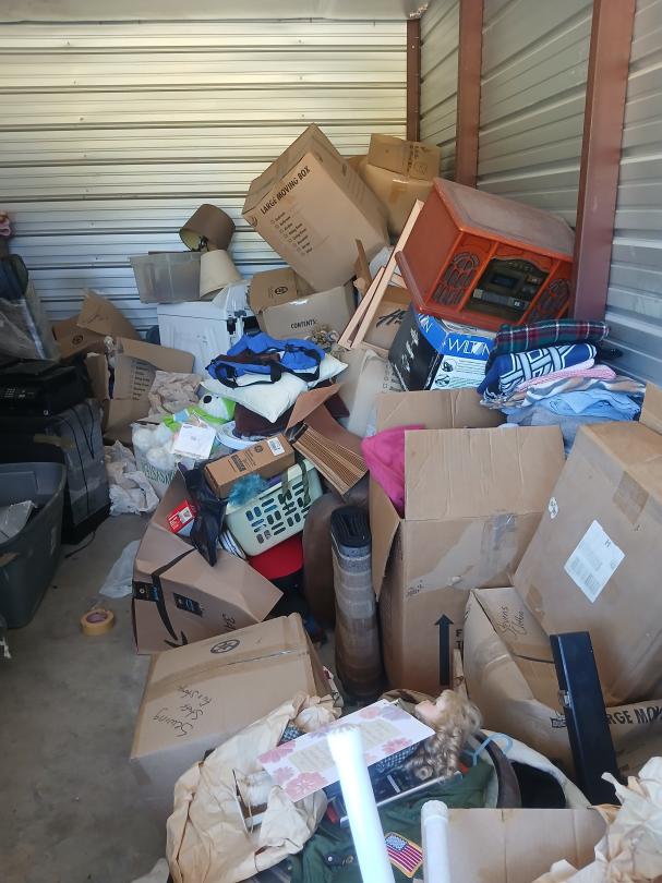 This unit appears to contain…full of boxes, totes, pool qs,iron boards,speaker,lamps,washer, household goods.