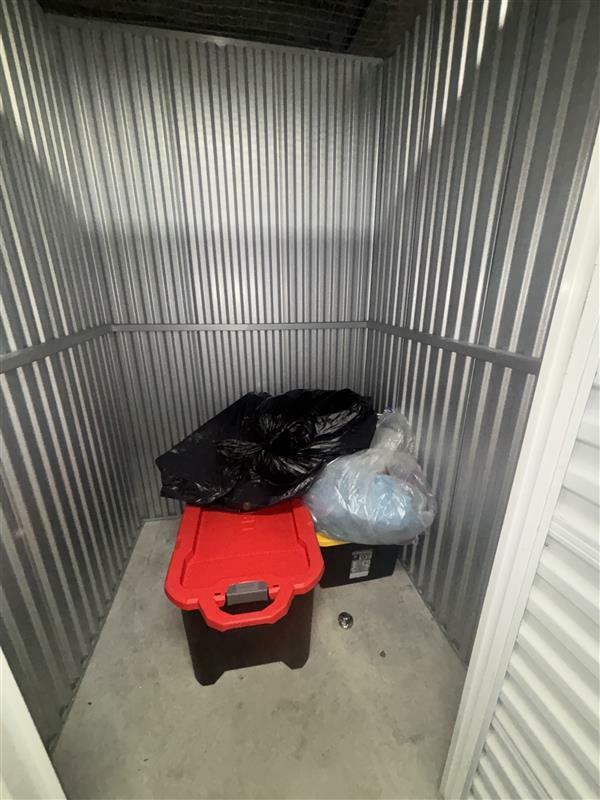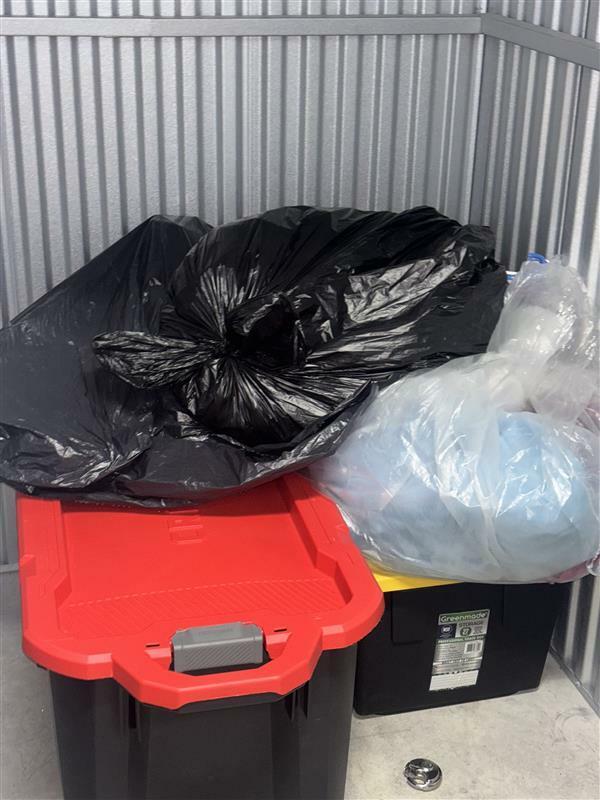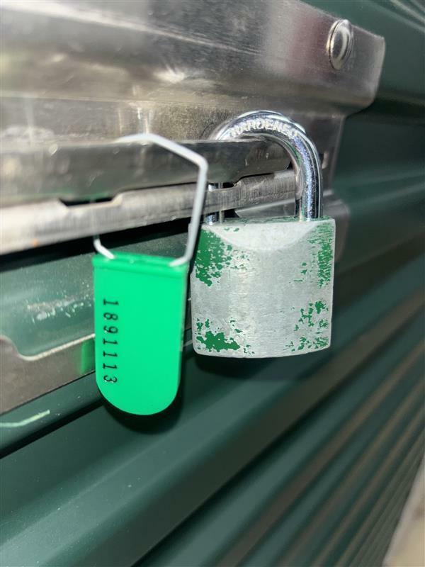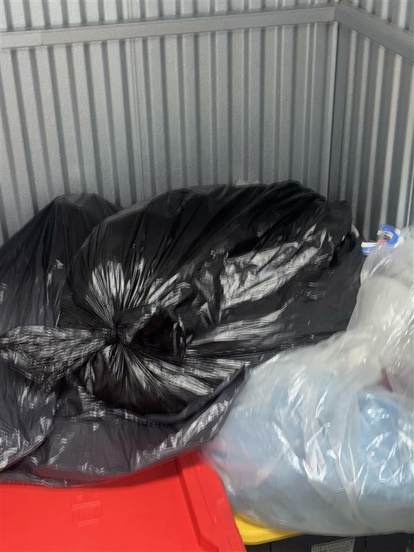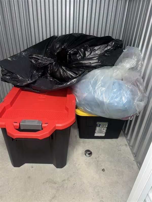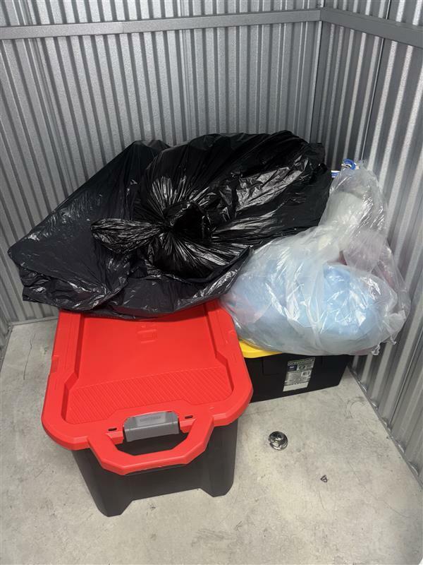 This unit appears to contain…Unit appears to contain unit appears to contain plastic bins, clothes, bags. Seal # 1891113