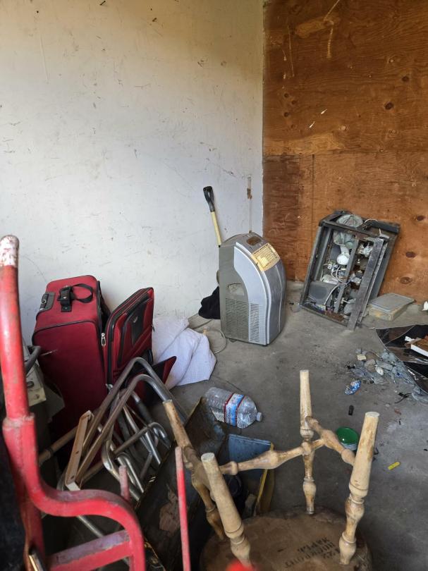 This unit appears to contain…Shovel, AC appliance, Chairs, Luggage, Hardhat, Appliance,