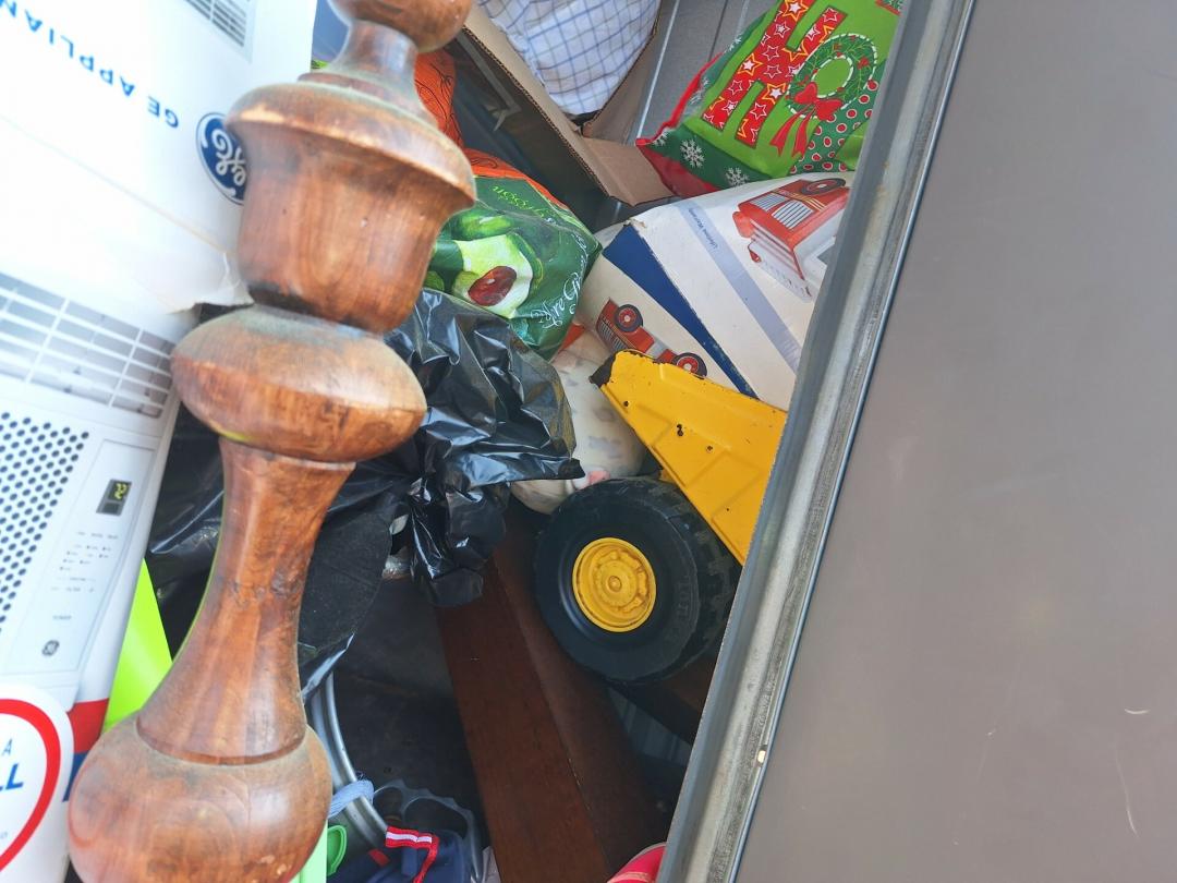 This unit appears to contain…Toolbox. Bike, Tools, Medical Supplies, Landscaping equip., Shelving, Mattresses, Box Springs, Bed fRames, Dressers/Armoire, Lamps, Chairs, Tables, Kitchenware, Decor, Plastic Bags, Plastic Containers, Misc. Boxes, Clothing, Suitcases, Laundry Baskets, Artwork, Coolers, Toys, Misc. Items