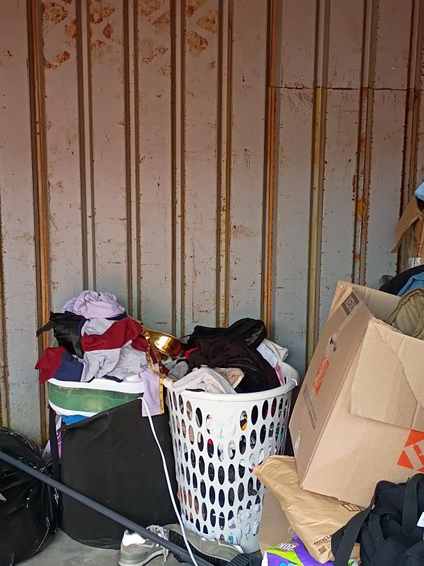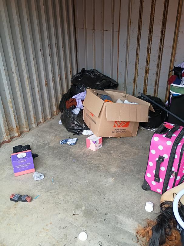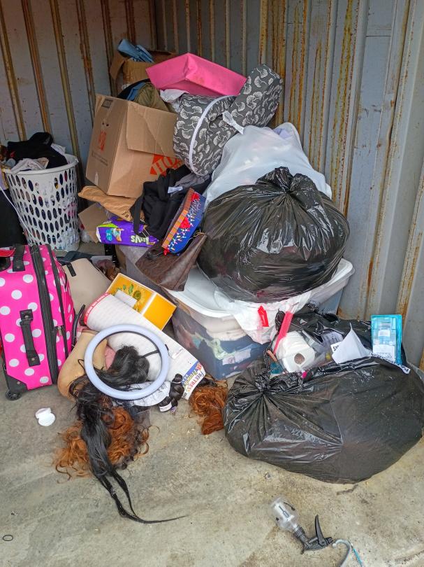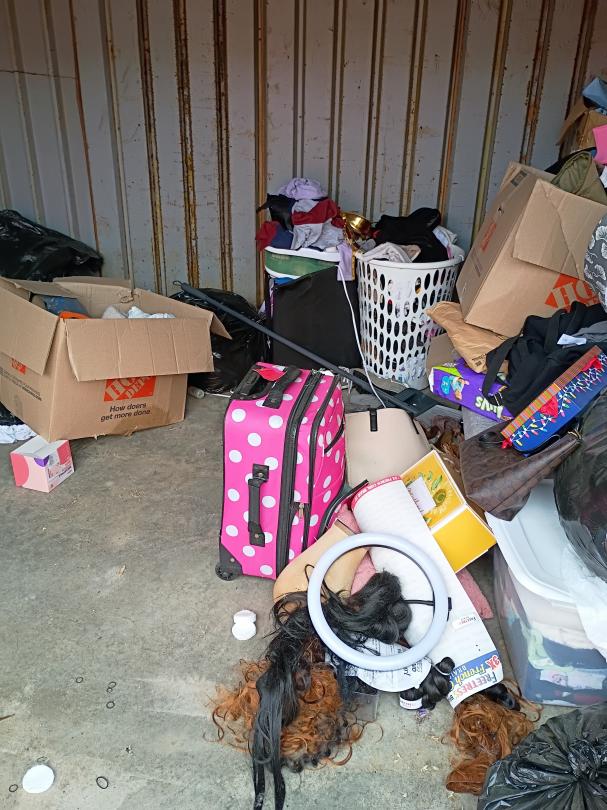 This unit appears to contain…Plastic Bags,Plastic Containers,Misc. Boxes,Clothing,Misc. Items,Suitcases