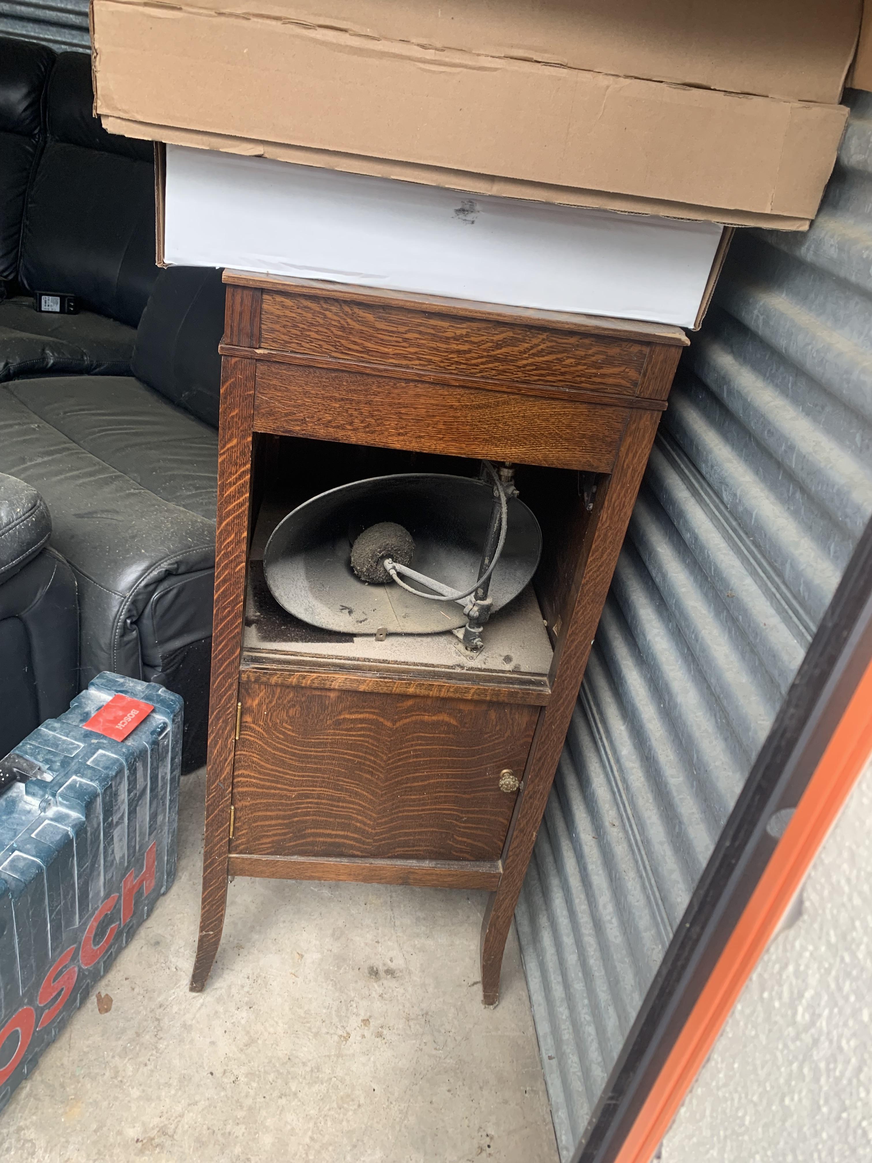 This unit appears to contain…leather Electric Sectional Recliner, Vinyl Flooring, Glue Down Carpenter Table, Record Player, Bosch Hammon Drill.