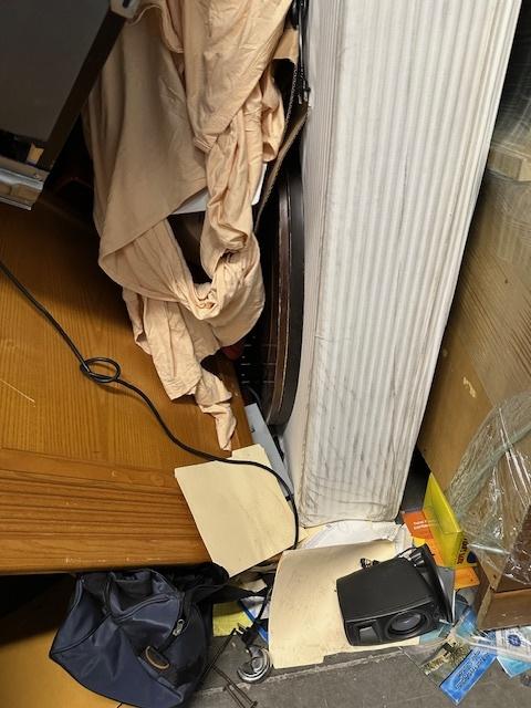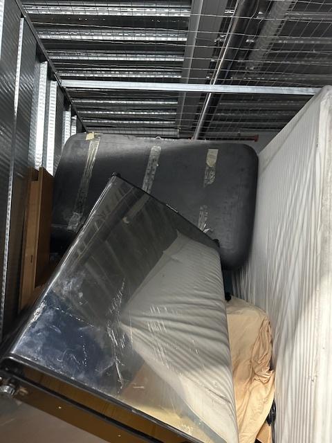 This unit appears to contain…Head Board, Mattress, Entertainment Center, Table Top, Mini Fridge, Speakers, Tote, Mics items