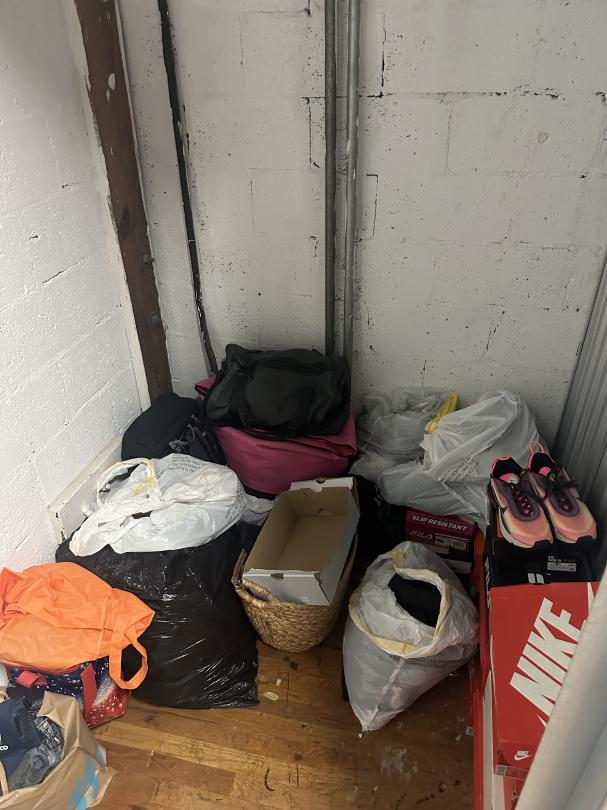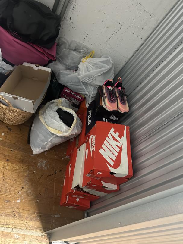 This unit appears to contain…Plastic bags, cloths, shoes, basket, backpack, sport bags