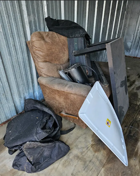 This unit appears to contain…Drive up unit contains a Recliner couch