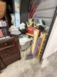 This unit appears to contain…Contents of this unit are as follows lamp king mattress and boxes springs, Dresser with a marble top, end tables, mirror, jump box, fan, electric heater, cleaning supplies, decor, boxes , totes, wicker baskets and 2 couches.