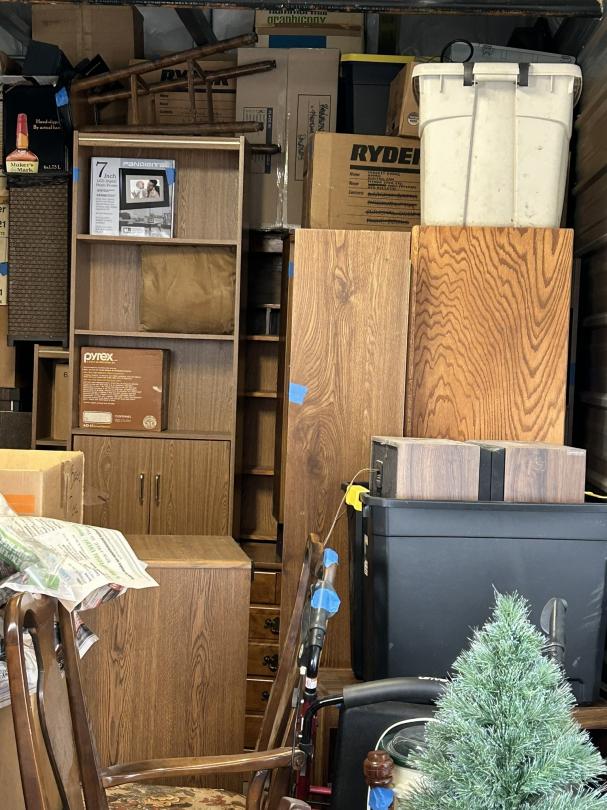 This unit appears to contain…Bins, Chair, Cooler, Dresser, DVD's, Tv Stand, Shelves, Stool, Table and Chairs, Home Decor, Bed Frame, Speakers, Can, Audio Equipment, Heavy Duty Shelving Units