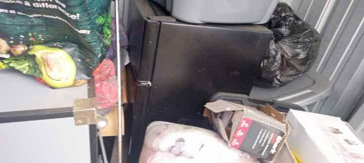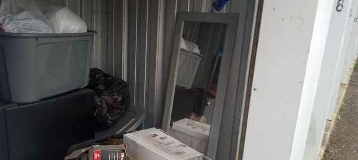 This unit appears to contain…Fenced & Gate, Indoor, Security Cameras 32"TV, comforter, mirror, storage chest box, mini fridge/freezer toaster, miscellaneous items